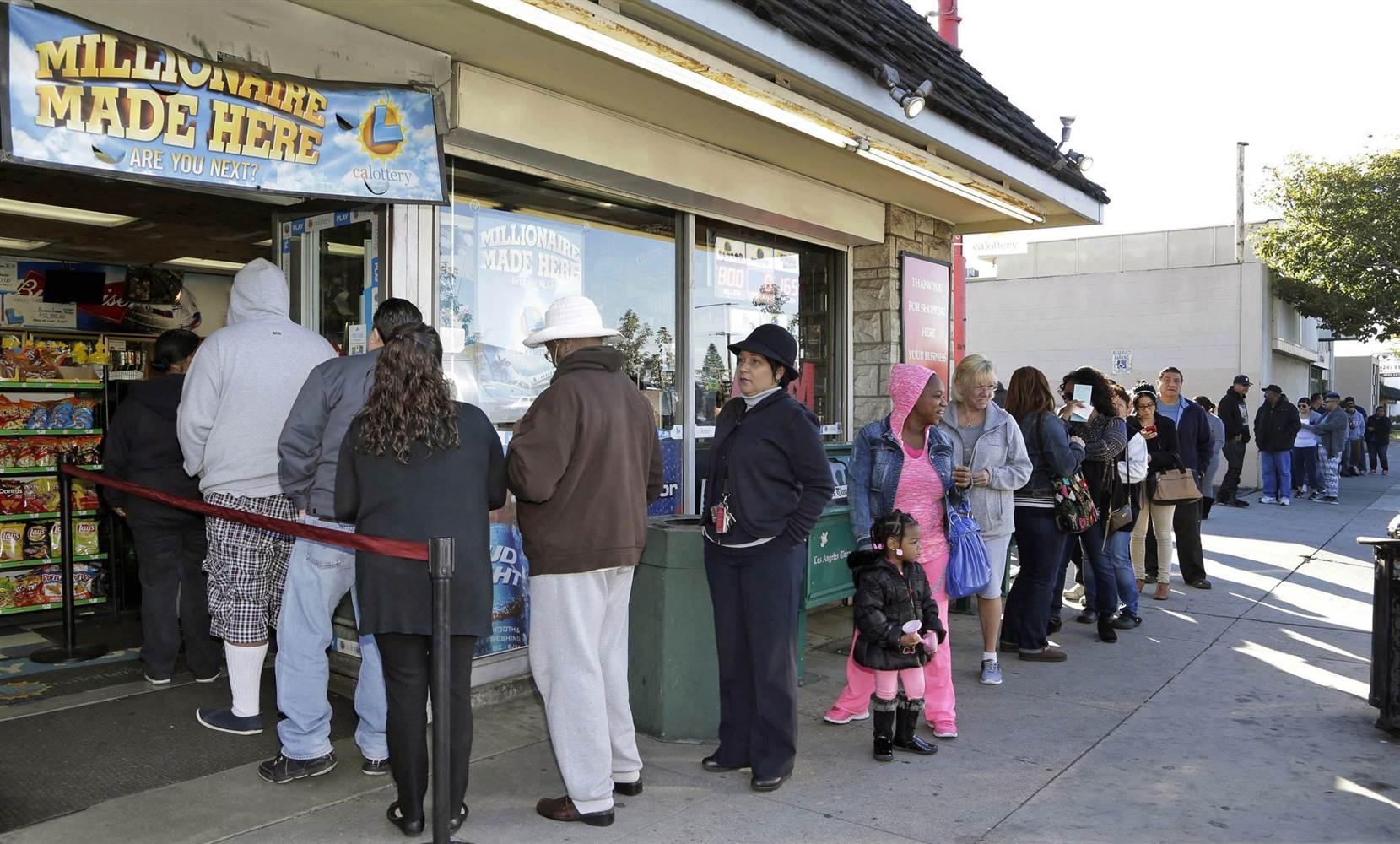 | Người dân ở bang California, Mỹ, xếp hàng dài chờ đợi mua vé số hôm 8/1. Ảnh: AP |