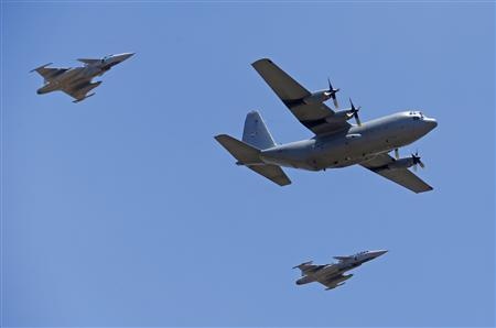 | Hai phi cơ chiến đấu hộ tống chiếc Hercules C-130. Ảnh: Reuters |