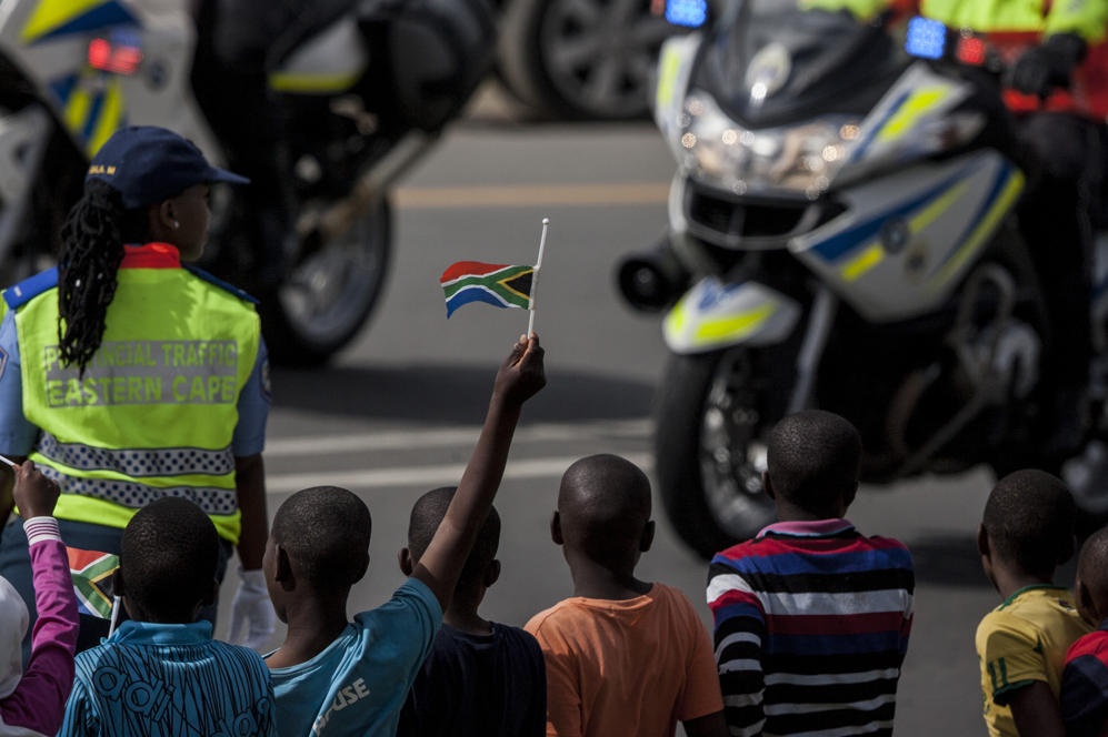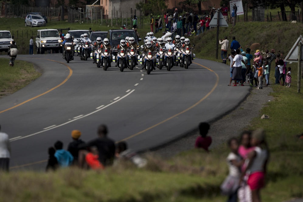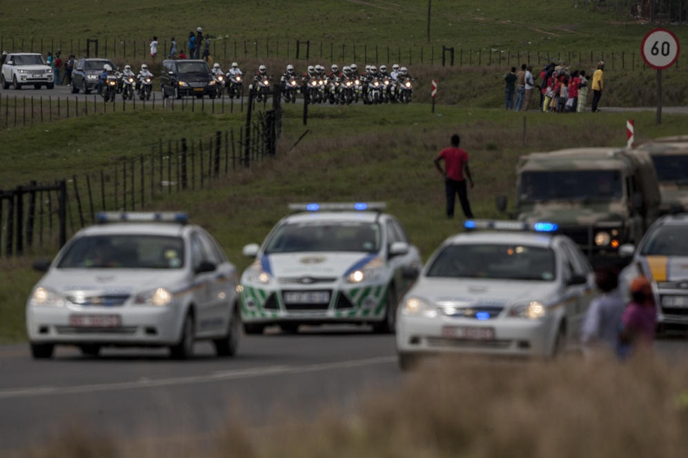 | Đoàn xe cảnh sát hộ tống chiếc xe chở thi hài vị anh hùng dân tộc Nam Phi trên đường cao tốc dẫn tới làng Qunu hôm 14/12. Ảnh: Getty Images |