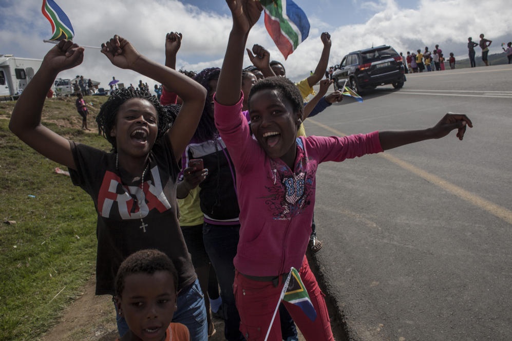 | Thay vì than khóc, những người dân địa phương reo hò và nhảy múa để chào đón vị tổng thống da màu đầu tiên của Nam Phi trở về với quê hương. Ảnh: Getty Images |