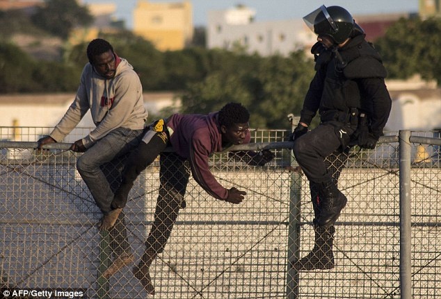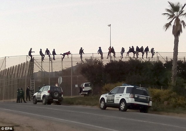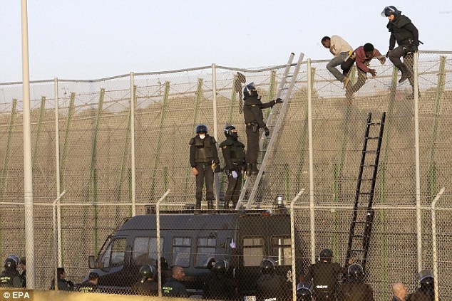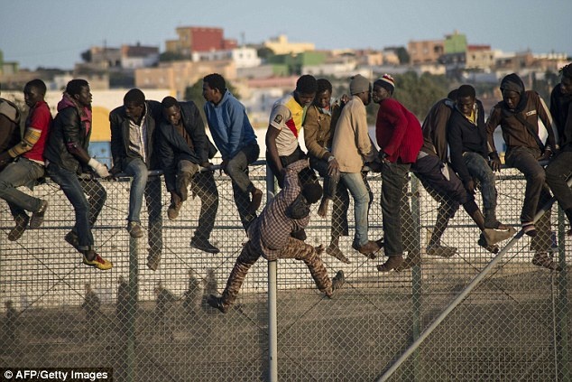 | Bộ Nội vụ Tây Ban Nha cho biết 60 người đã nhập cư trái phép thành công trong tổng số 2.000 người trèo qua hàng rào vào năm 2014. Giới nghiên cứu xác định tỷ lệ dòng người di cư lên khu vực phía bắc châu Phi, nơi tiếp giáp lãnh thổ Tây Ban Nha, đã tăng gấp đôi trong năm ngoái. Ảnh: AFP |