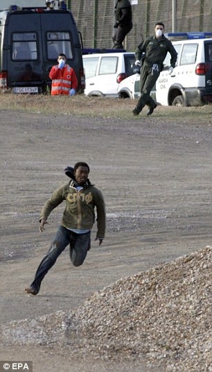 | Trong tháng 4/2014, cảnh sát Tây Ban Nha đã truy lùng ít nhất 25 người vượt rào thành công. Theo các nhân chứng, những người Morocco đã chạy tới khi chân trần của họ tóe máu. Ảnh: EPA. |