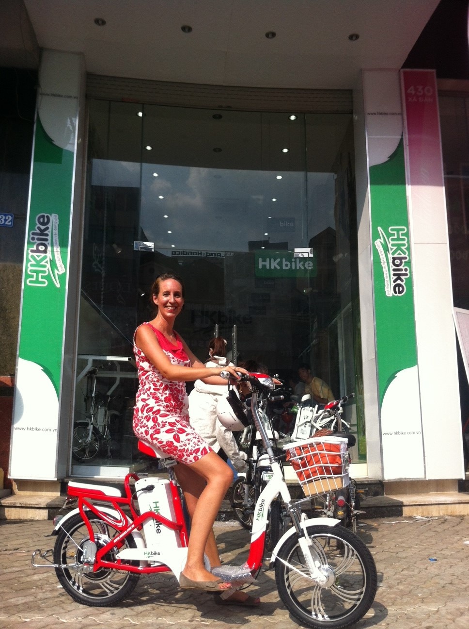 Bàn bạc với chồng, Delphine vẫn muốn sử dụng xe đạp điện nhưng phải là loại xe đi được quãng đường xa, chất lượng bền bỉ thay cho chiếc xe chạy ắc quy chập chờn là quá khó khăn vào lúc này. Biết được vướng mắc của cô, giáo viên dạy tiếng Việt của Delphine đã tư vấn cho cô tìm hiểu về các loại xe đạp điện sử dụng pin, trong đó có dòng xe chạy pin Lithium của hãng xe đạp điện Hong Kong HKbike.