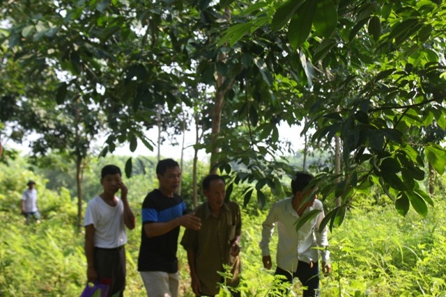 Người nhà cũng đưa ông Ngọ (giữa, áo xanh bộ đội) đến hiện trường ngay khi có tin báo đã tìm được chiếc xe xấu số.