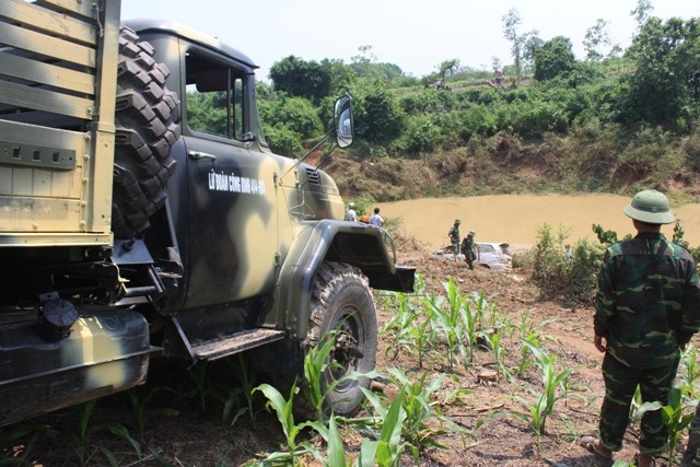 2 xe Zil 131 được lữ đoàn công binh 414 (quân khu IV) được điều tới hiện trường để tời xe 7 chỗ lên bờ.