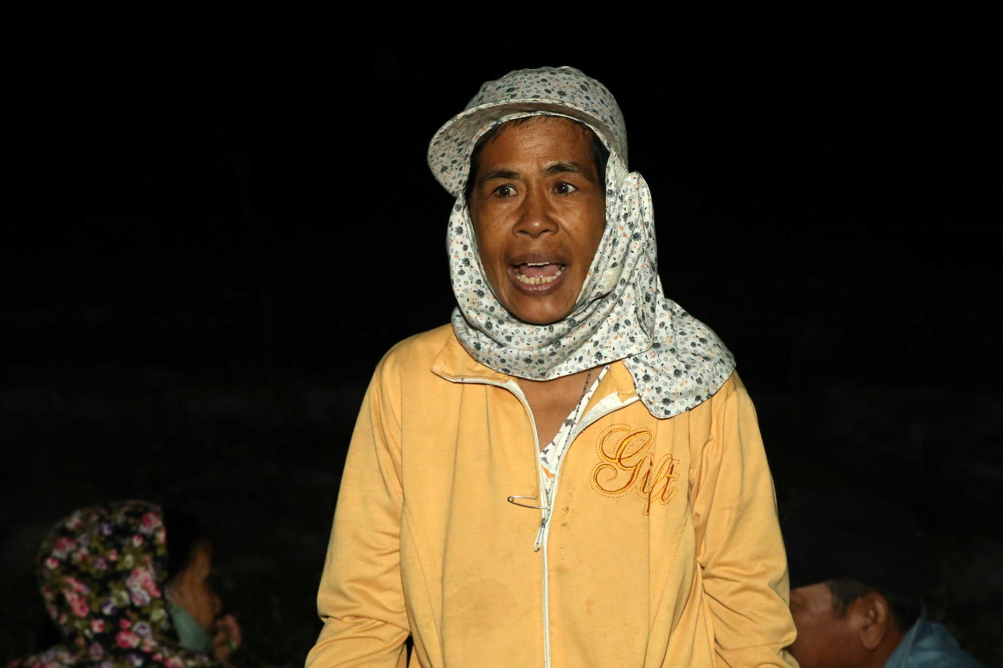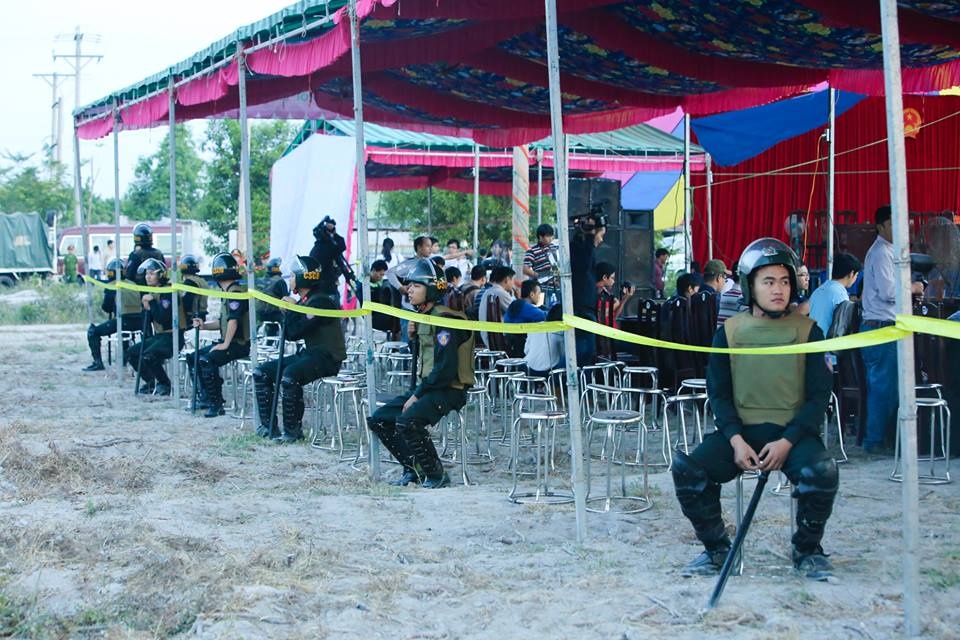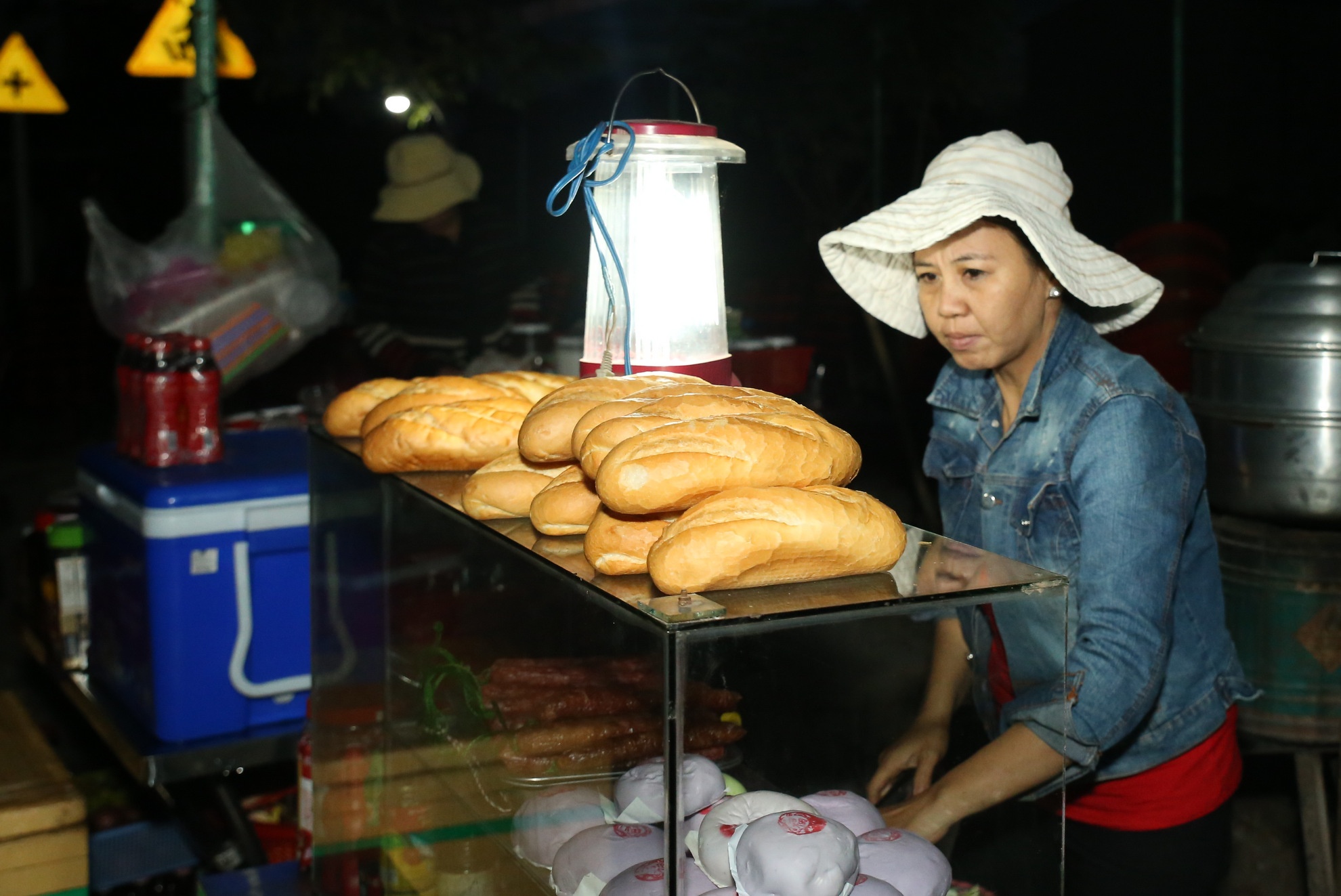 Người dân sở tại cũng tranh thủ dọn quán bán bánh mỳ, cà phê, nước uống phục vụ người dân. Xung quanh địa điểm mở phiên tòa không có điện nên người dân phải dùng đèn pin, đèn sạc.