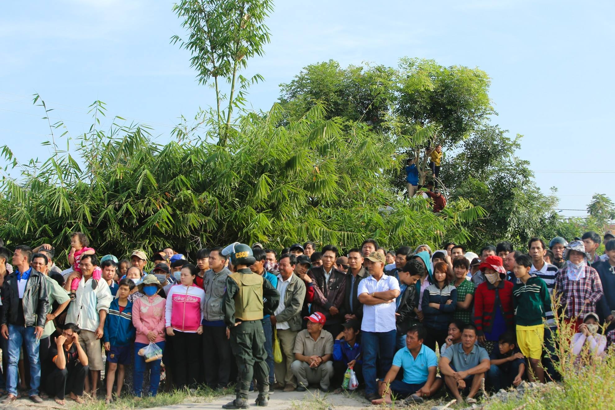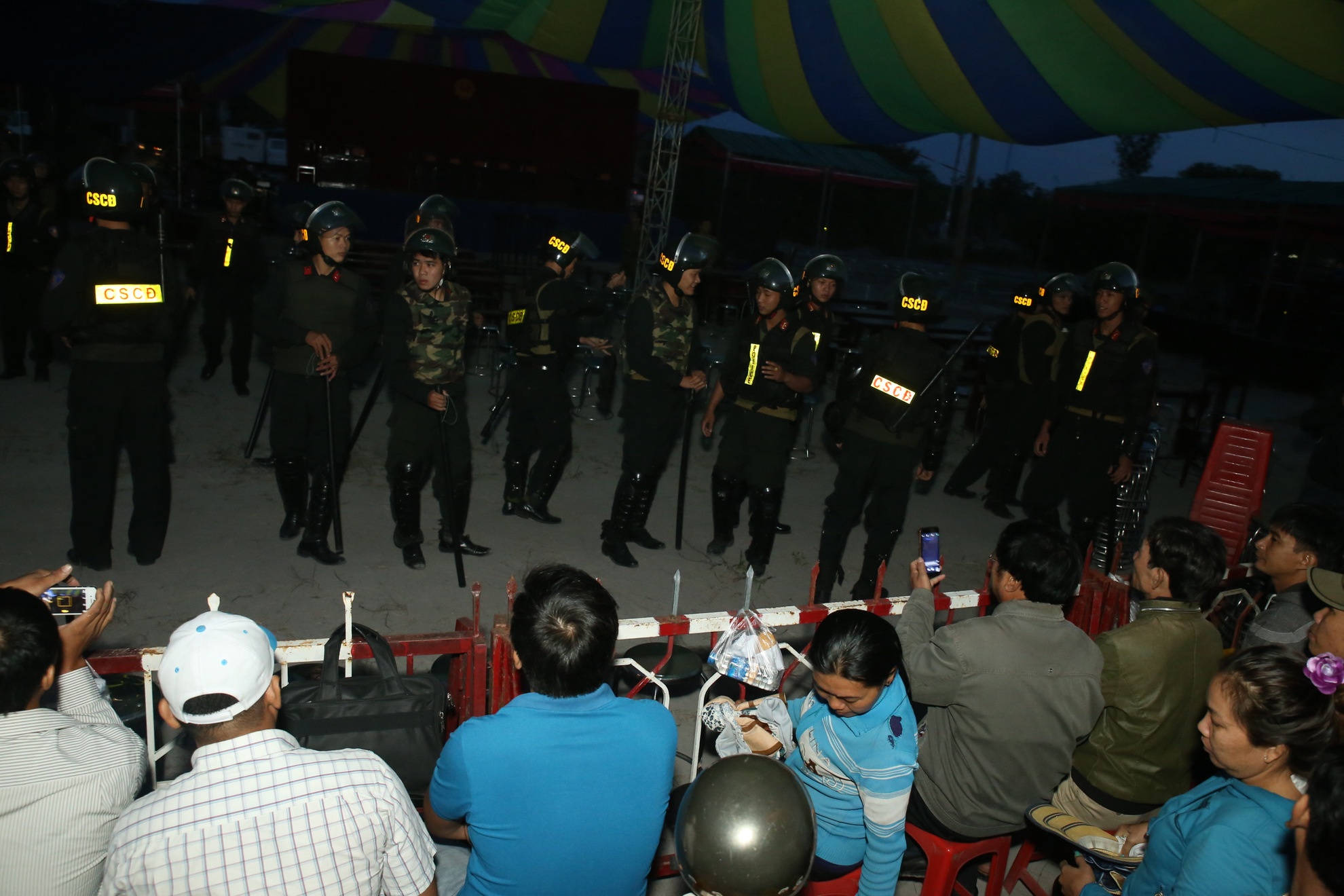 Người dân vào khu vực xử án giành ghế ngồi nên lực lượng cảnh sát cơ động được triển khai lập tức để giữ gìn trật tự.