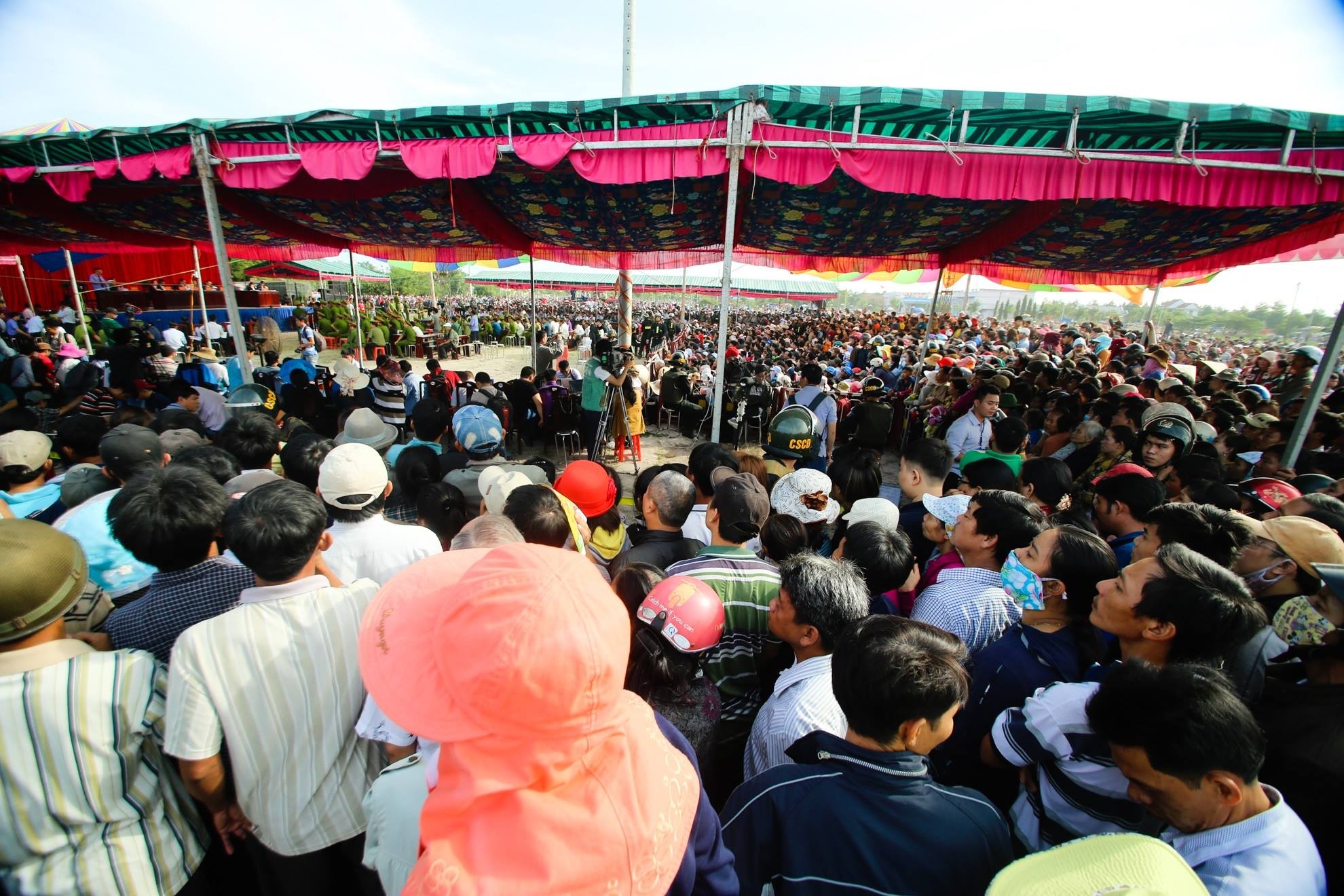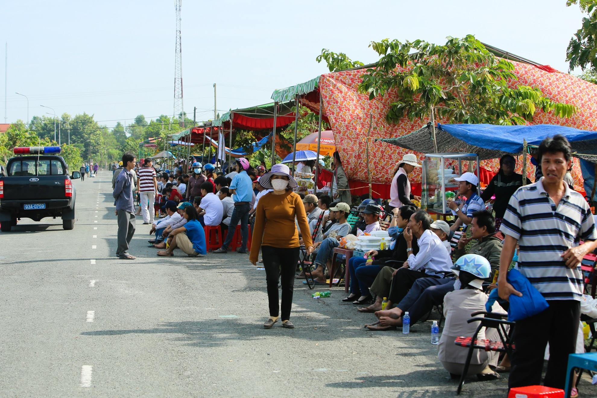 Trước đó, từ sáng sớm, hàng trăm người dân đã có mặt tại bãi đất trống trong khu hành chính huyện Chơn Thành - địa điểm diễn ra phiên xử vụ thảm sát. Nhiều người từ nhiều tỉnh ở miền Tây, Tây Nguyên, TP HCM,... đến xem xét xử. Tuy nhiên, vì quy định, họ không được đến gần khu vực diễn ra phiên tòa.