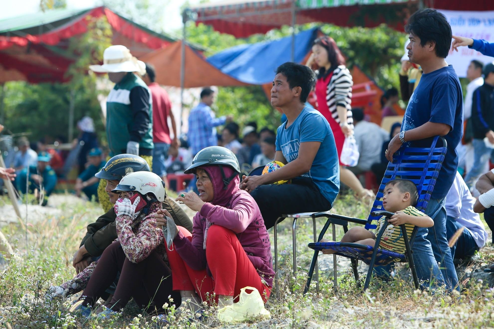 Số khác ngồi trên bãi cỏ trong khu vực.