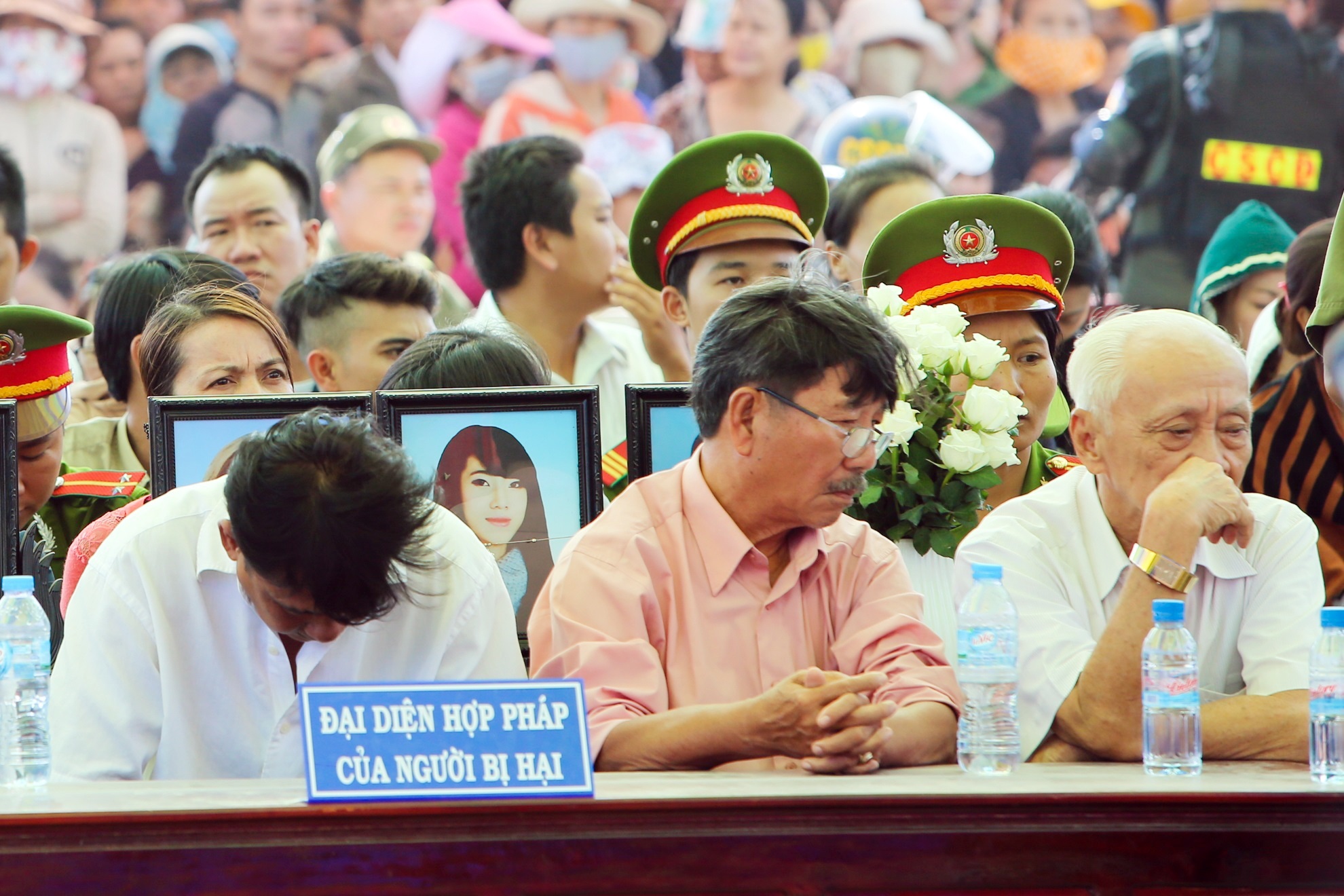 Lúc thấy 3 bị cáo được dẫn giải vào, họ òa khóc và thể hiện sự phẫn uất.