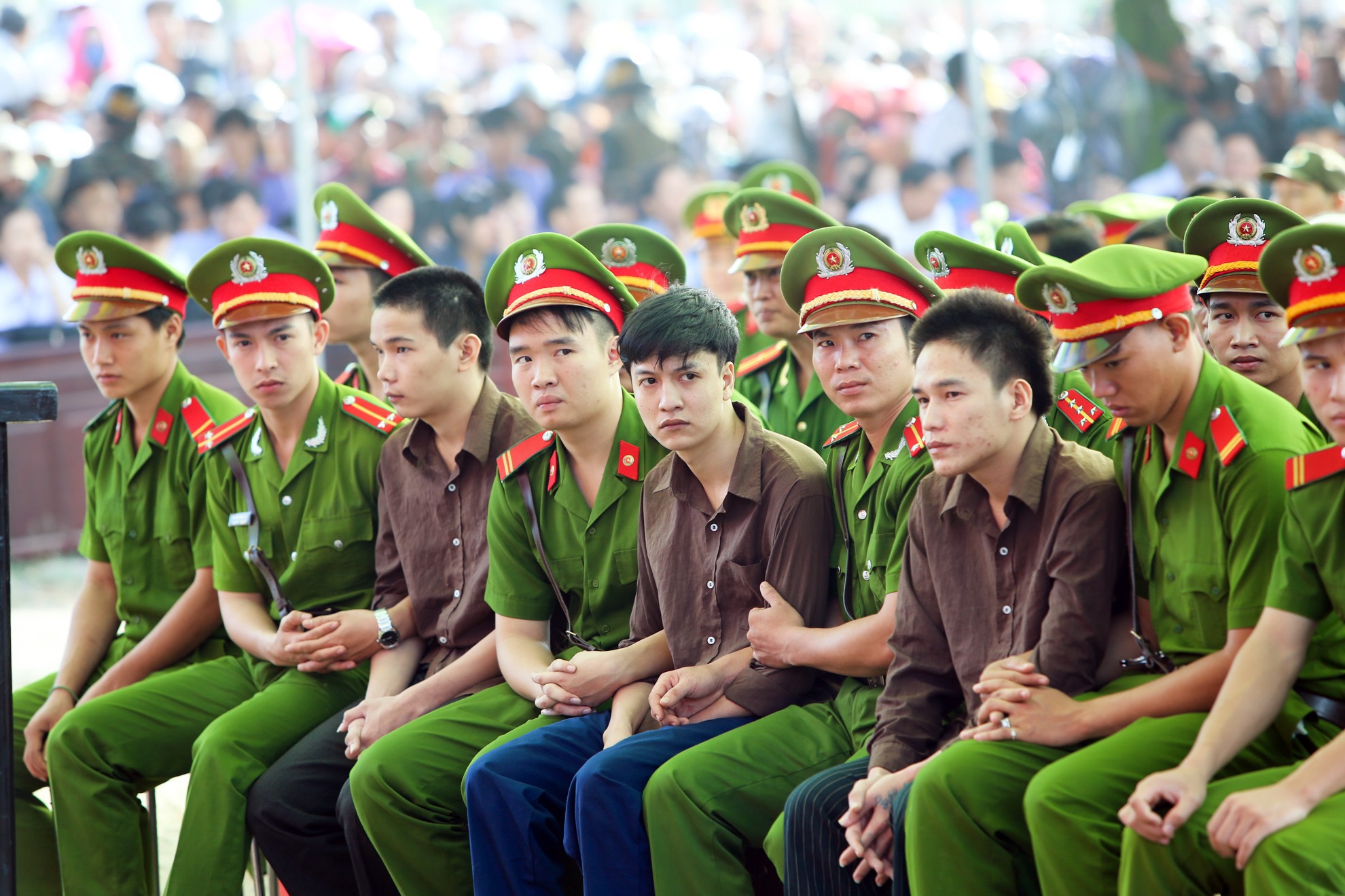 Dù vụ án xảy ra nhiều tháng trước nhưng sáng nay hàng nghìn người vẫn kéo đến đứng kín khu vực xét xử.