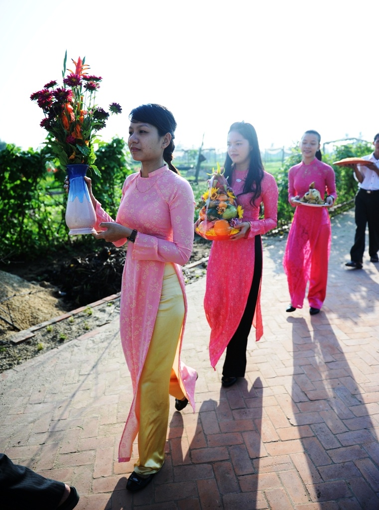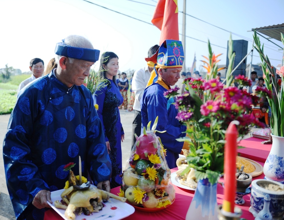 | Theo ông Nguyễn Kim Sáu, Bí thư xã Cẩm Hà, nhờ gìn giữ được tục lệ nên hiện làng rau trở thành điểm tham quan du lịch nổi tiếng, mỗi năm đón 280.000 lượt khách quốc tế. Nhờ đó mà 260 hộ/1.000 nhân khẩu có thu nhập bình quân 20 triệu/người/năm. Trong ảnh: Các cụ già chuẩn bị hành lễ. |