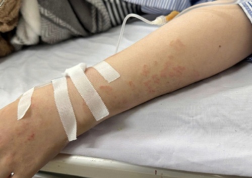 Ngày 6/1, bệnh viện cũng tiếp nhận bệnh nhân nữ 28 tuổi với tình trạng ngứa toàn thân kéo dài hơn một năm, đã điều trị nhiều lần tại chuyên khoa da liễu nhưng không cải thiện.