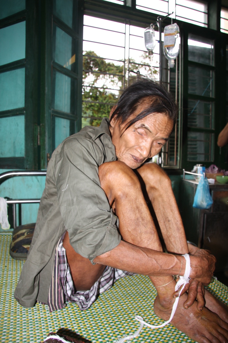 | Ông Thanh đã có thể ngồi dậy và ăn cháo loãng. |