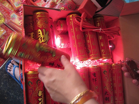 Chọn mua dây pháo điện tử cỡ lớn tại một gian hàng, ông A Dũng (ở quận 5) cho biết: “Tôi mua dây pháo điện tử để trong nhà vừa trang trí vừa nghe được tiếng pháo xưa, tuy tiếng nổ không to bằng pháo thật nhưng cũng góp phần không khí cho ngày tết”.