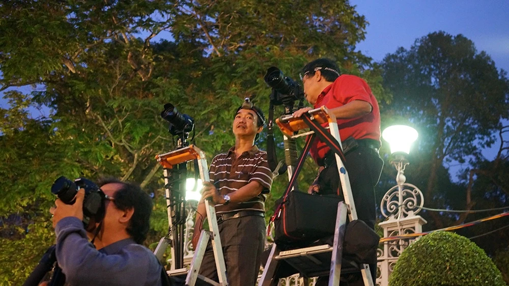 | Phóng viên và các nhiếp ảnh gia là những người có mặt từ sớm. |