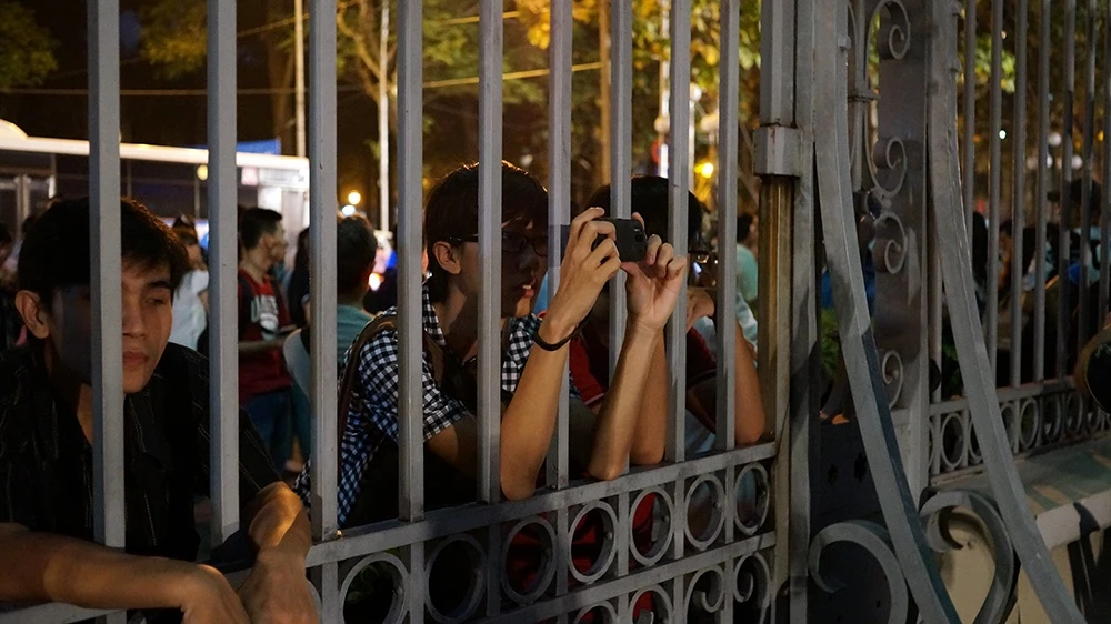 | Dù không thể vào được bên trong, nhưng những người ở ngoài vẫn có cách để xem được màn trình diễn. |