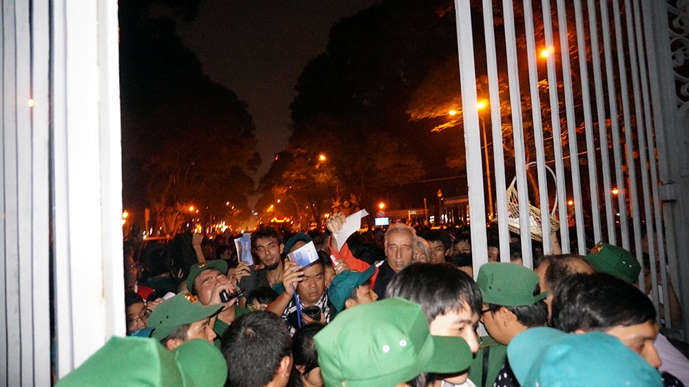| Tuy là một sự kiện mở, nhưng chỉ những ai có giấy mời mới có thể vào bên trong Dinh. Lực lượng bảo vệ phải rất vất vả mới có thể cản được dòng người chen lấn bên ngoài. |