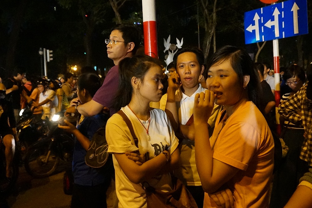 | Hàng ngàn người tập trung ở khu vực bên ngoài. Giao thông tắc nghẽn nghiêm trọng. |