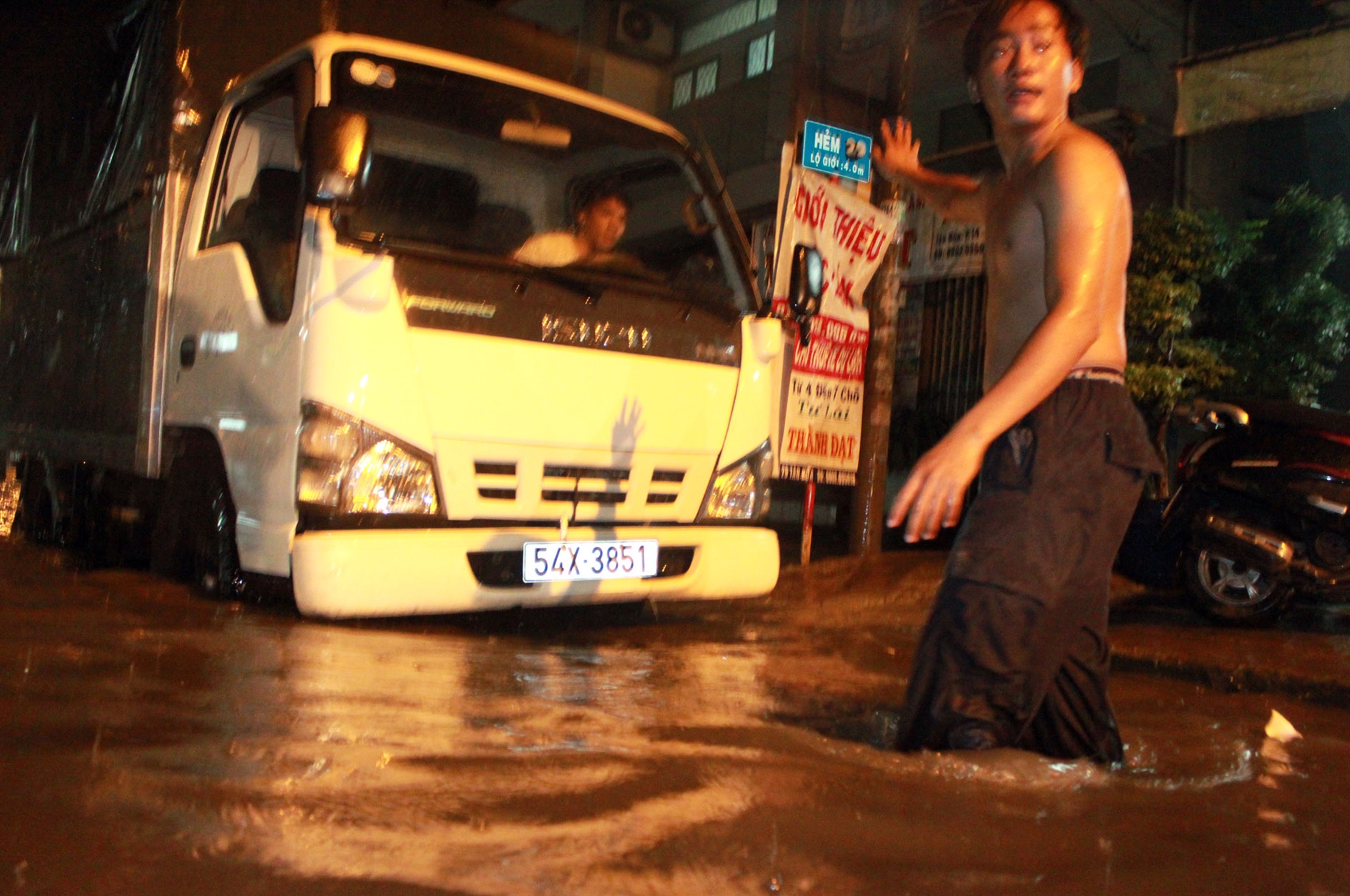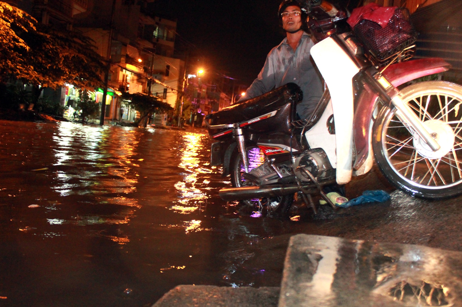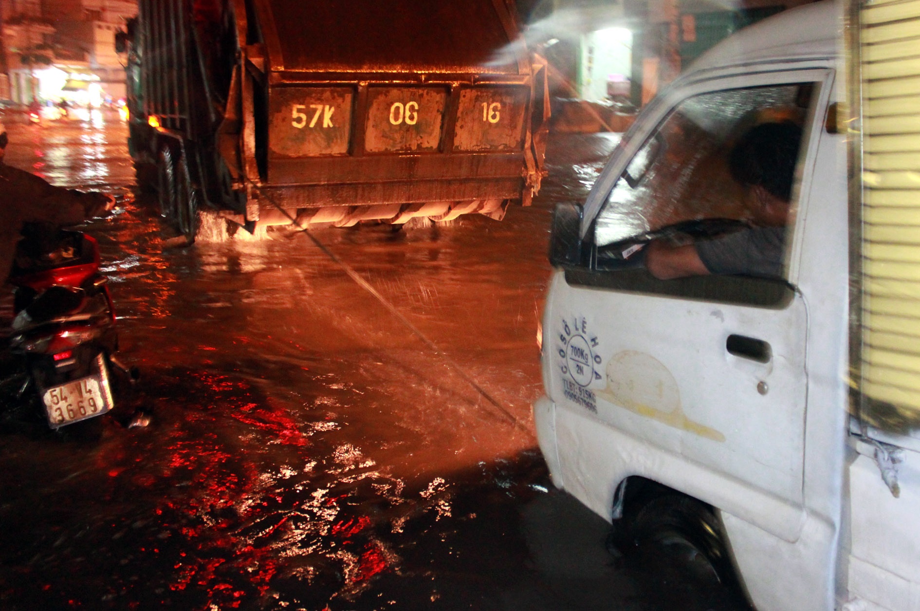 Người Sài Gòn chống chọi với nước ngập trong đêm tối