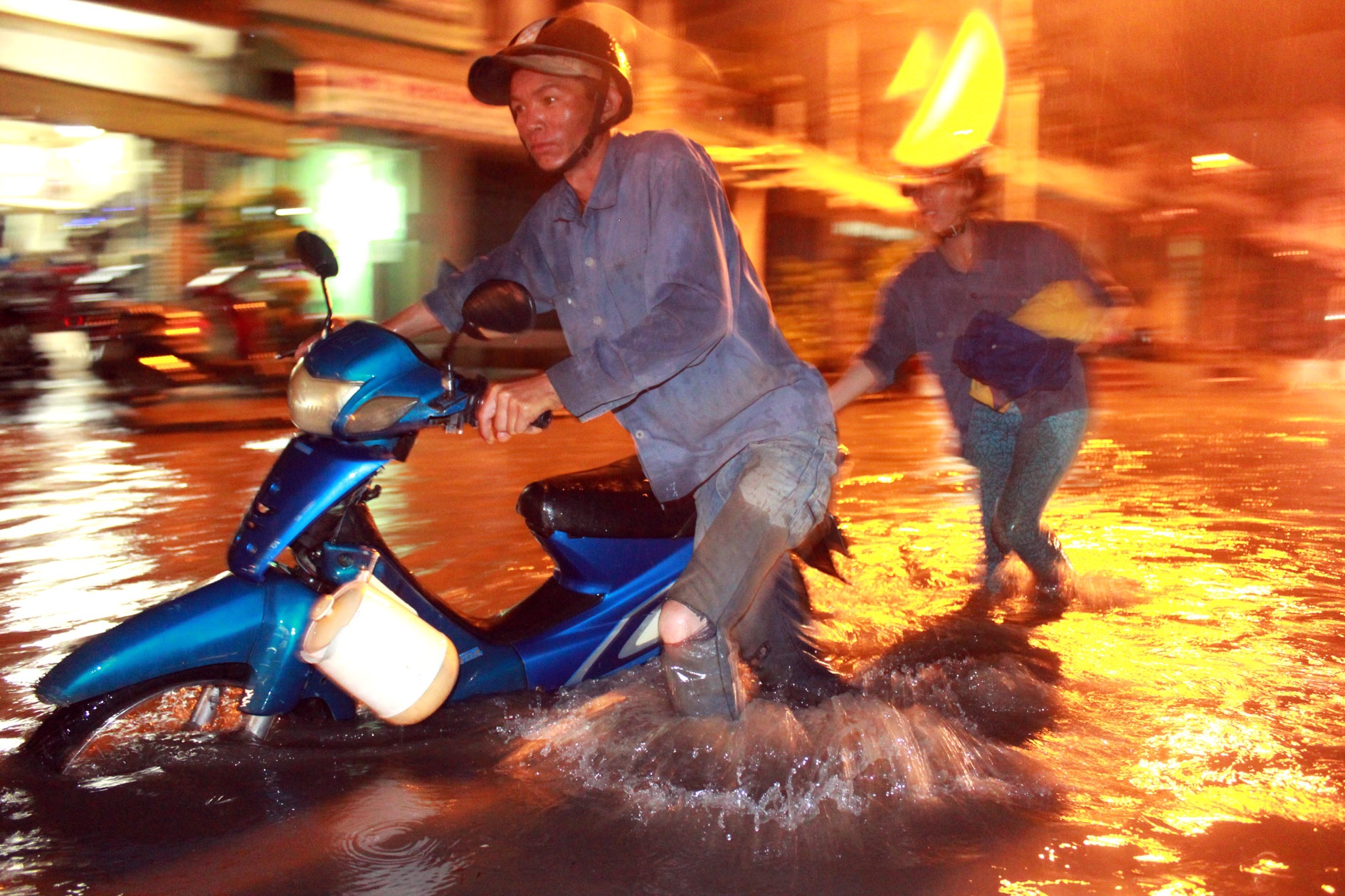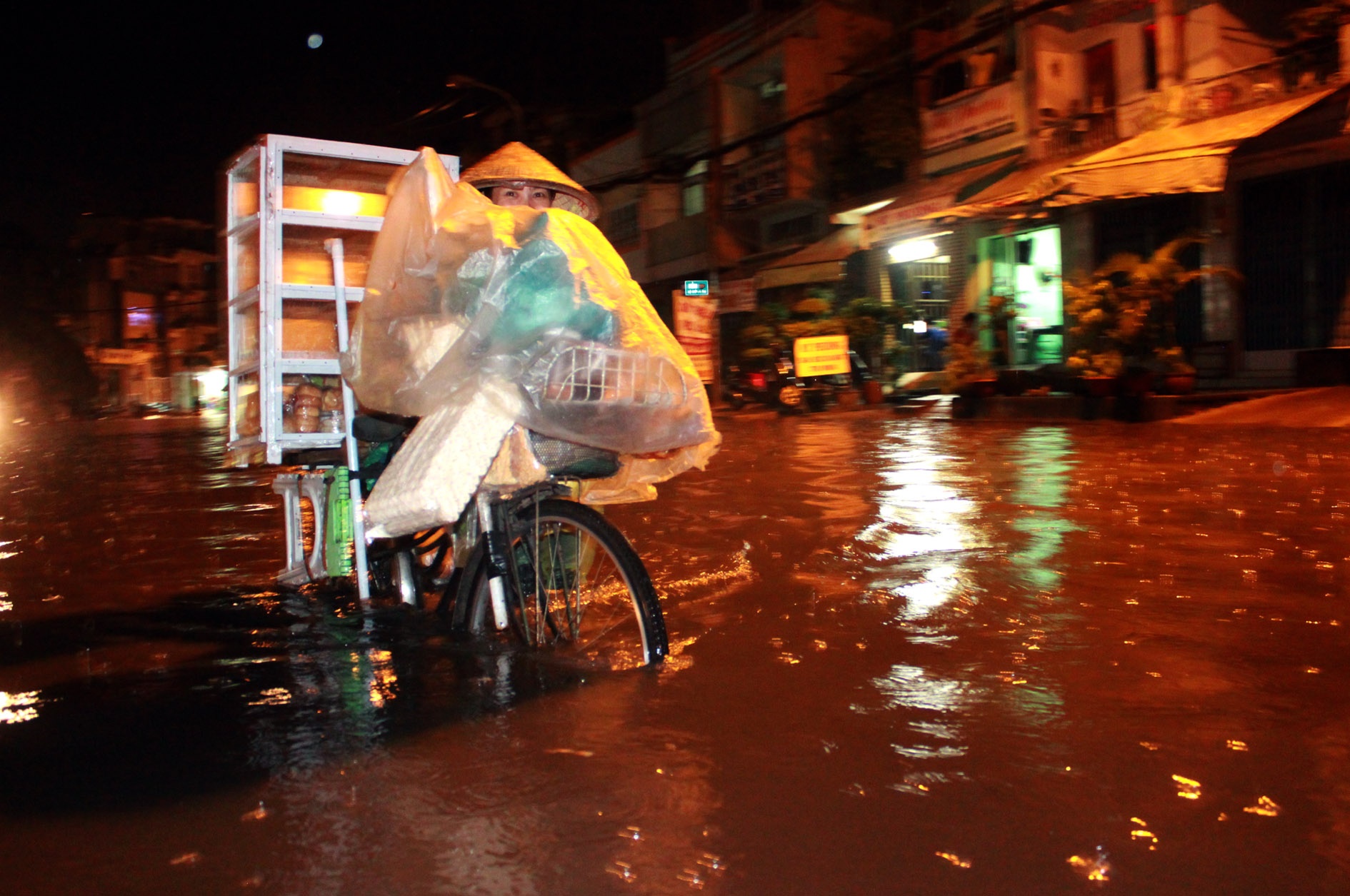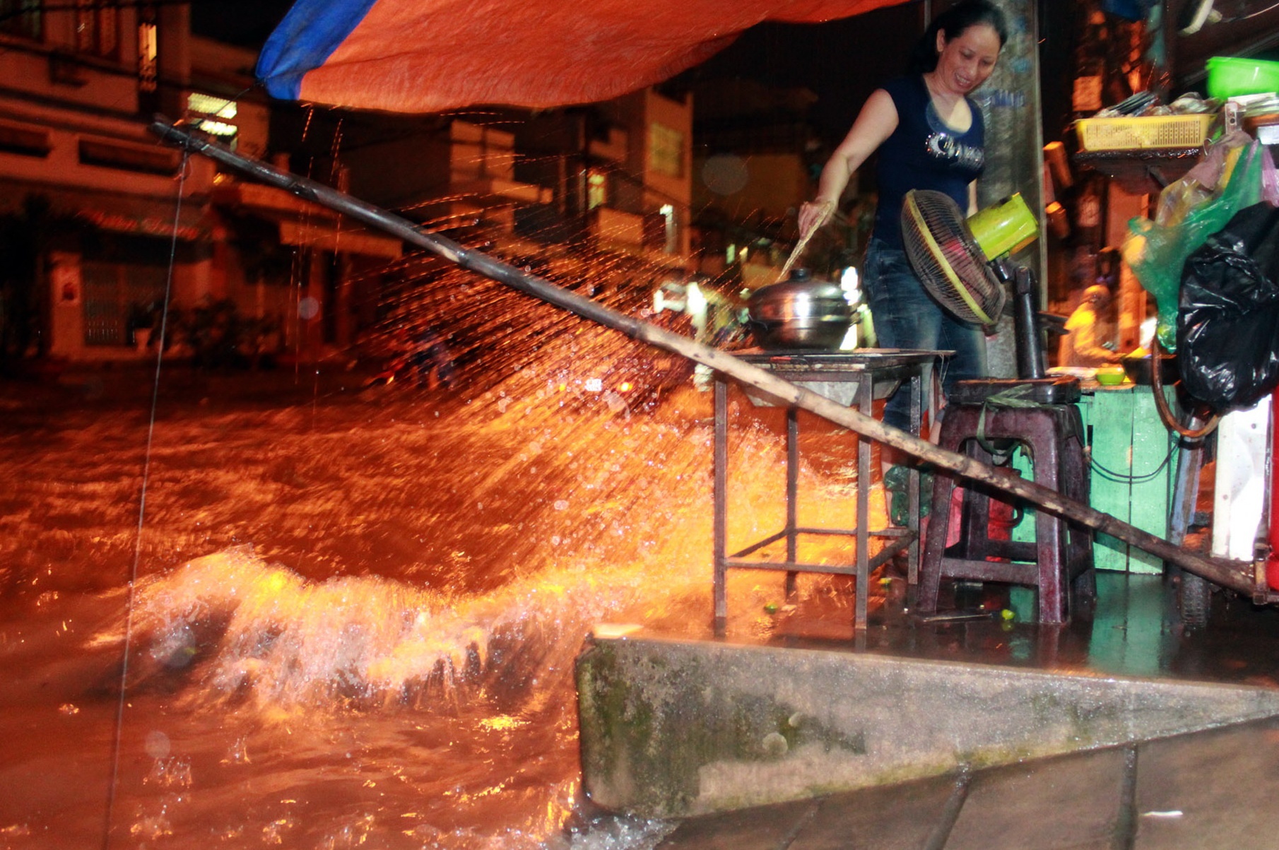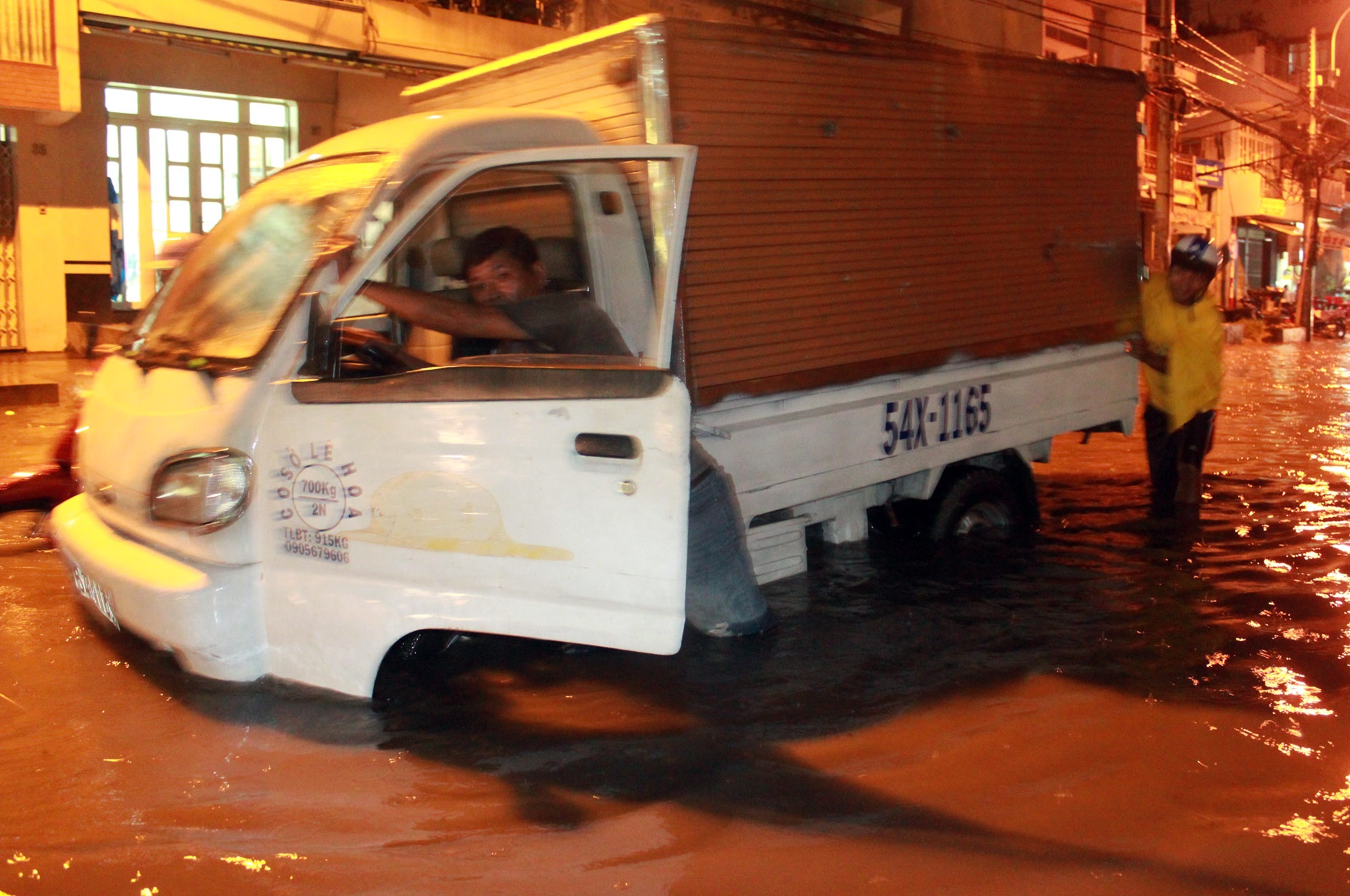 Người Sài Gòn chống chọi với nước ngập trong đêm tối