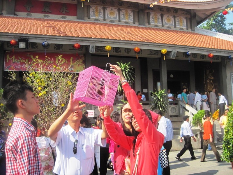 Ngay từ thời khắc giao thừa, nhiều người Sài Gòn đã đổ về các chùa lớn trên địa bàn đi lễ, phóng sinh chim cá để cầu may.