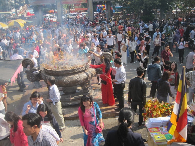 | Vĩnh Nghiêm (đường Nam Kỳ Khởi Nghĩa, quận 3) là một trong những chùa nổi tiếng của Sài Gòn. Trong ảnh: Vào 7h sáng mùng 1, hàng ngàn người đổ về chùa Vĩnh Nghiêm để thắp hương. |