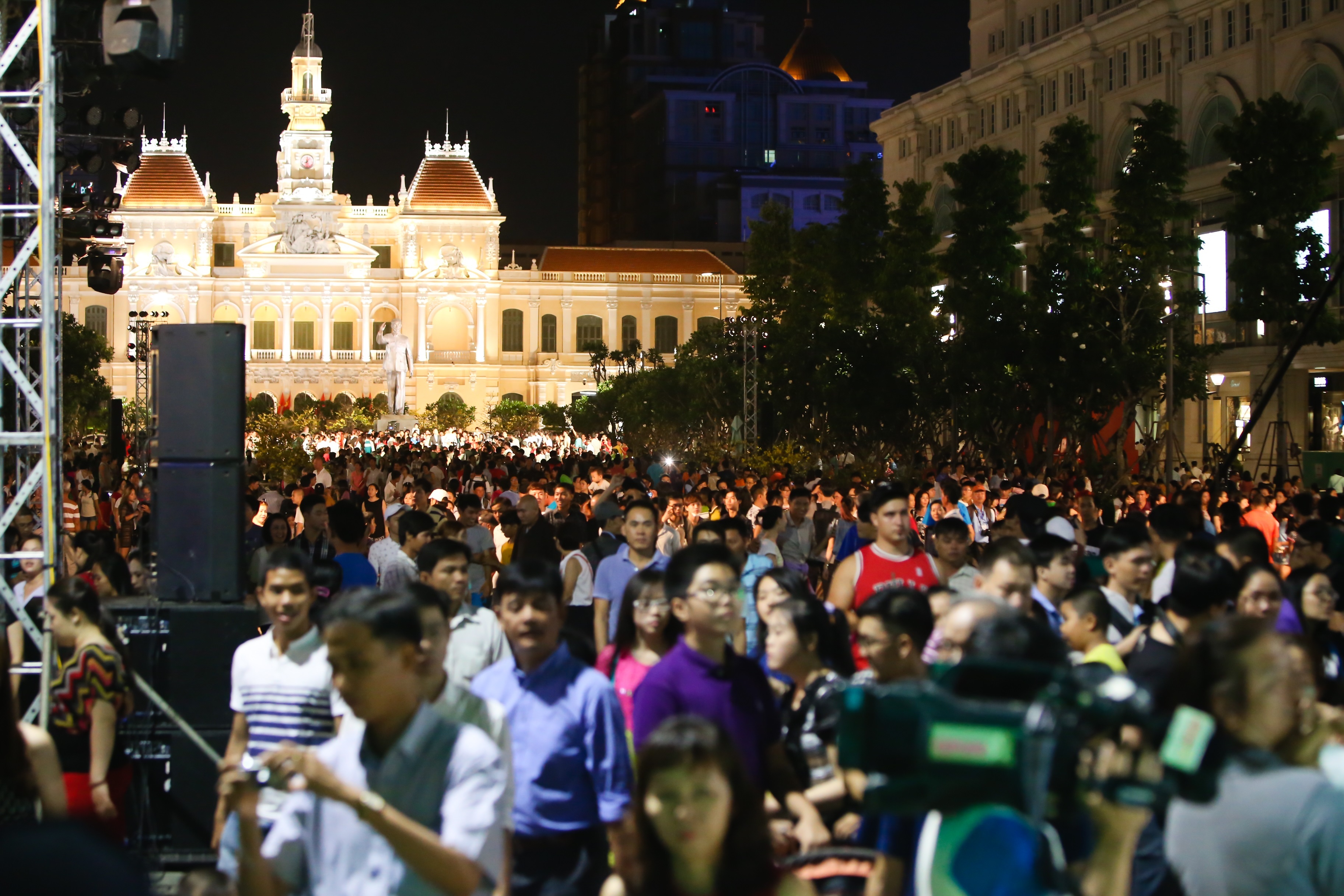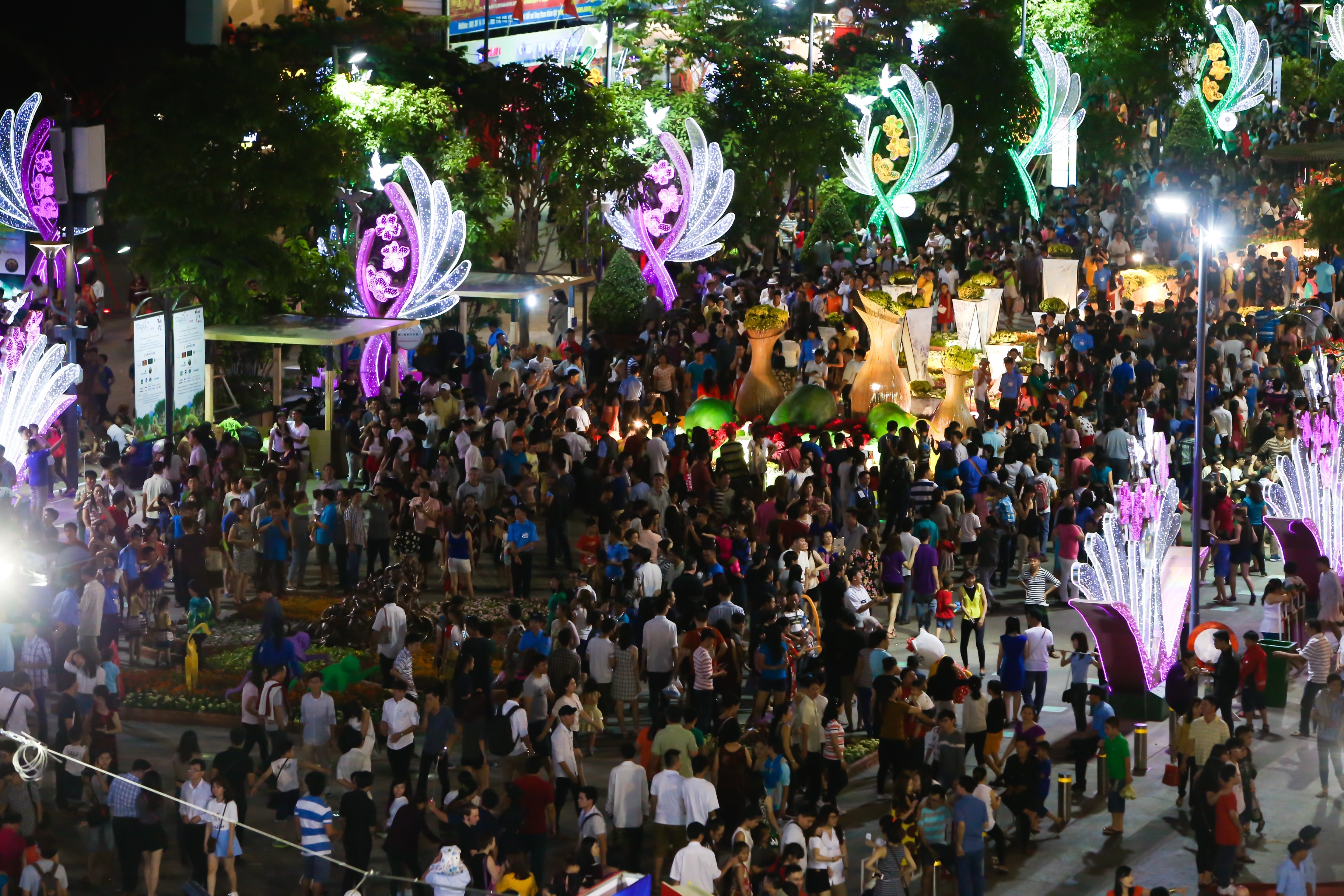 | 19h tối 5/2, lễ cắt băng khai mạc đường hoa Nguyễn Huệ diễn ra với sự tham dự của Chủ tịch nước Trương Tấn Sang, Phó chủ tịch Quốc hội Nguyễn Thị Kim Ngân, tân Bí thư Thành ủy Đinh La Thăng và nhiều quan chức khác. |