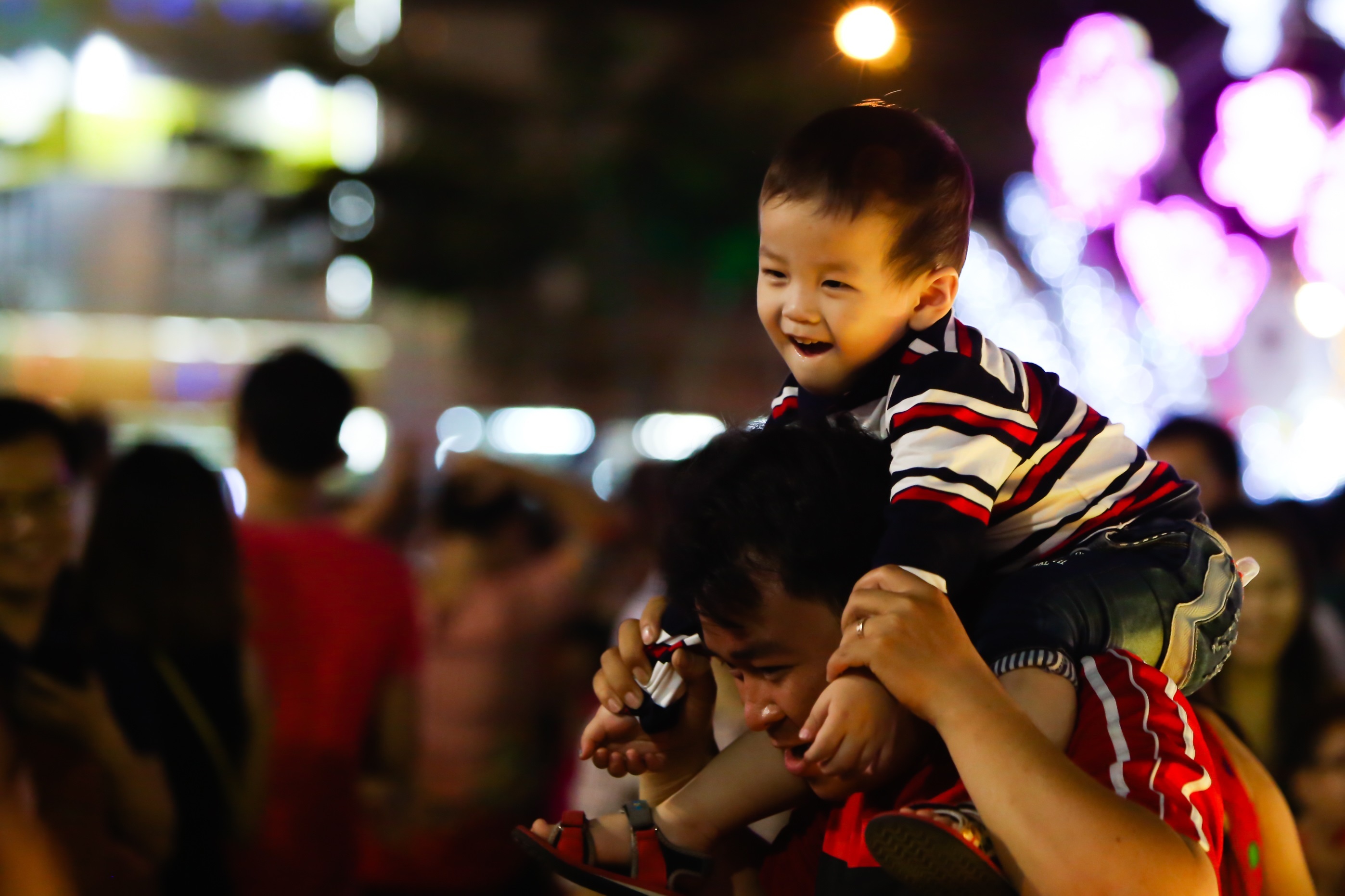 | Bé Nguyễn Nhật Khang (Q.Bình Tân) vui vẻ nô đùa khi lần đầu được ba dẫn đi chơi đường hoa. |