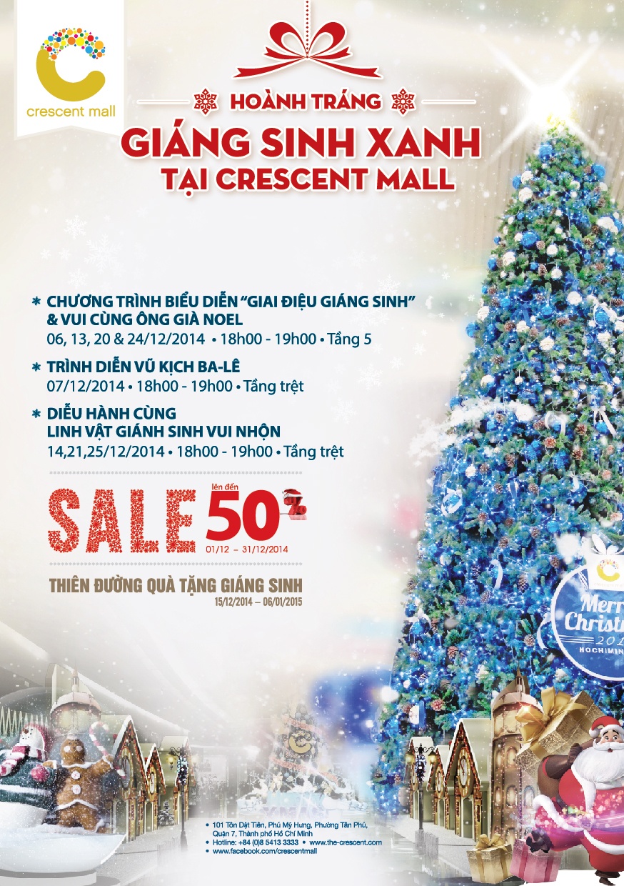 Không khí rộn ràng của Giáng sinh đang đến thật gần. Nếu bạn còn đang băn khoăn không biết đi đâu làm gì dịp Noel này còn chần chừ gì nữa, mùa lễ hội tưng bừng cùng các sự kiện, khuyến mãi hoành tráng tại Crescent Mall đang chờ đón bạn.