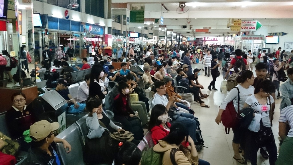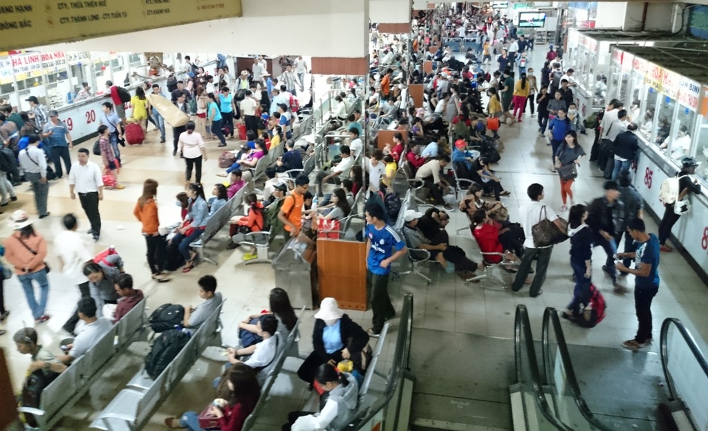 | Lượng khách tăng đột biến nên tại các quầy vé, người dân phải xếp hàng dài, chen chúc nhau chờ đợi. Theo quan sát, khách mua vé chủ yếu các tuyến xa như Sóc Trăng, Bạc Liêu, Cà Mau. Những nơi gần Sài Gòn hơn, như Long An, Tiền Giang, Vĩnh Long thì nhiều người di chuyển bằng xe máy, nên các quầy vé không đông. Dự báo lượng khách trong ngày tại bến xe miền Tây lên đến 50.000 người. |