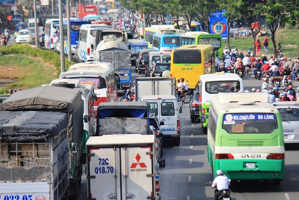| Quốc lộ 1A hướng từ TP HCM đi các tỉnh miền Tây bị ùn tắc kéo dài từ cầu Bình Thuận đến nút giao thông vòng xoay An Lạc. Hàng trăm ngàn phương tiện chen chúc nhau. |
