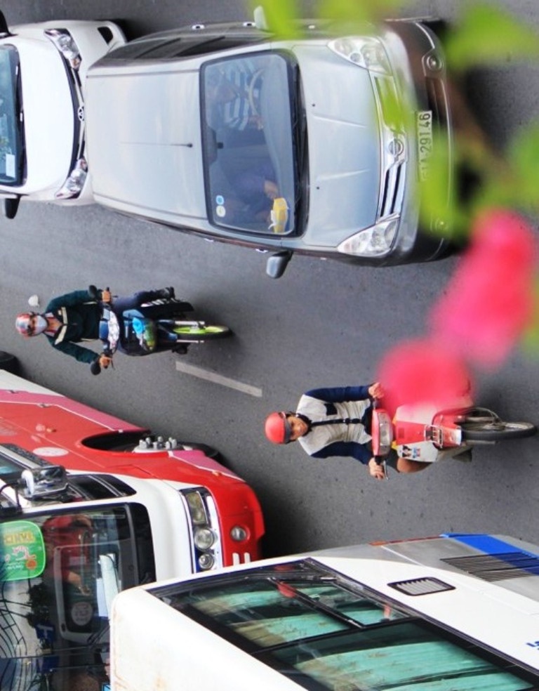 | Nhiều người đi xe máy mạo hiểm chạy vào phần đường dành cho ôtô trên quốc lộ 1A. |