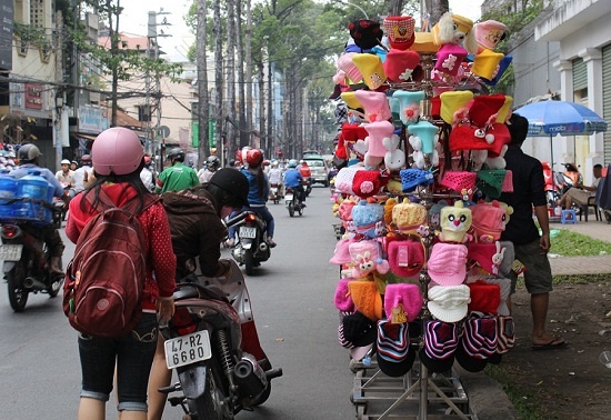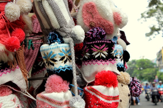 | Nhiều điểm bán mũ ấm, khăn choàng mọc lên dọc các tuyến đường, một hình ảnh mới ở TP.HCM. |