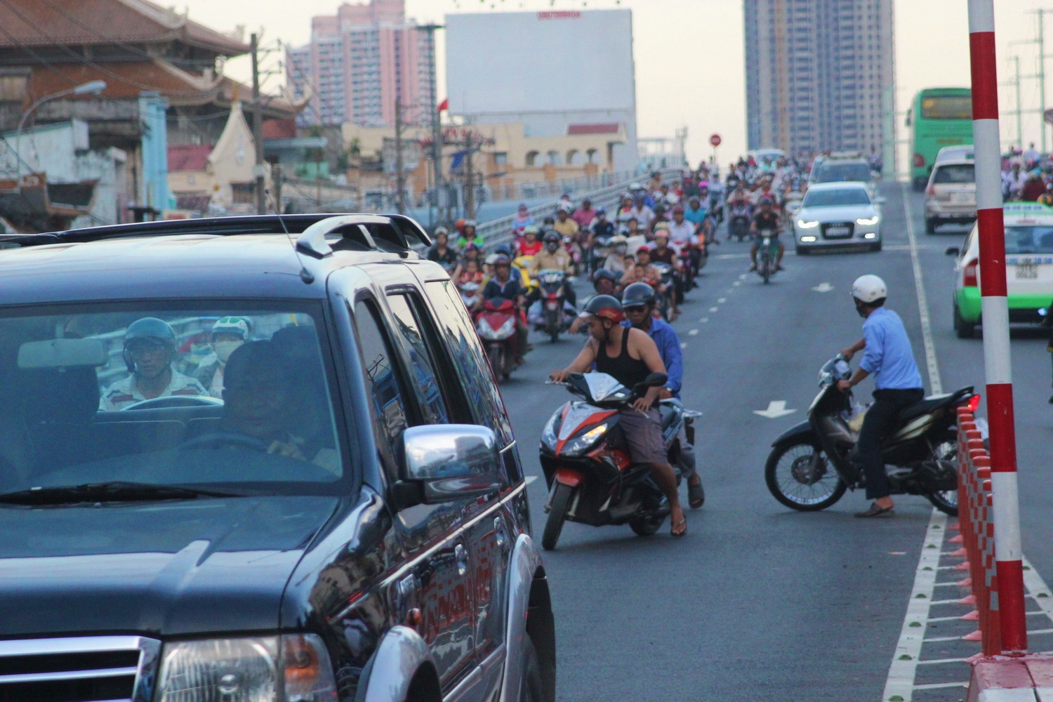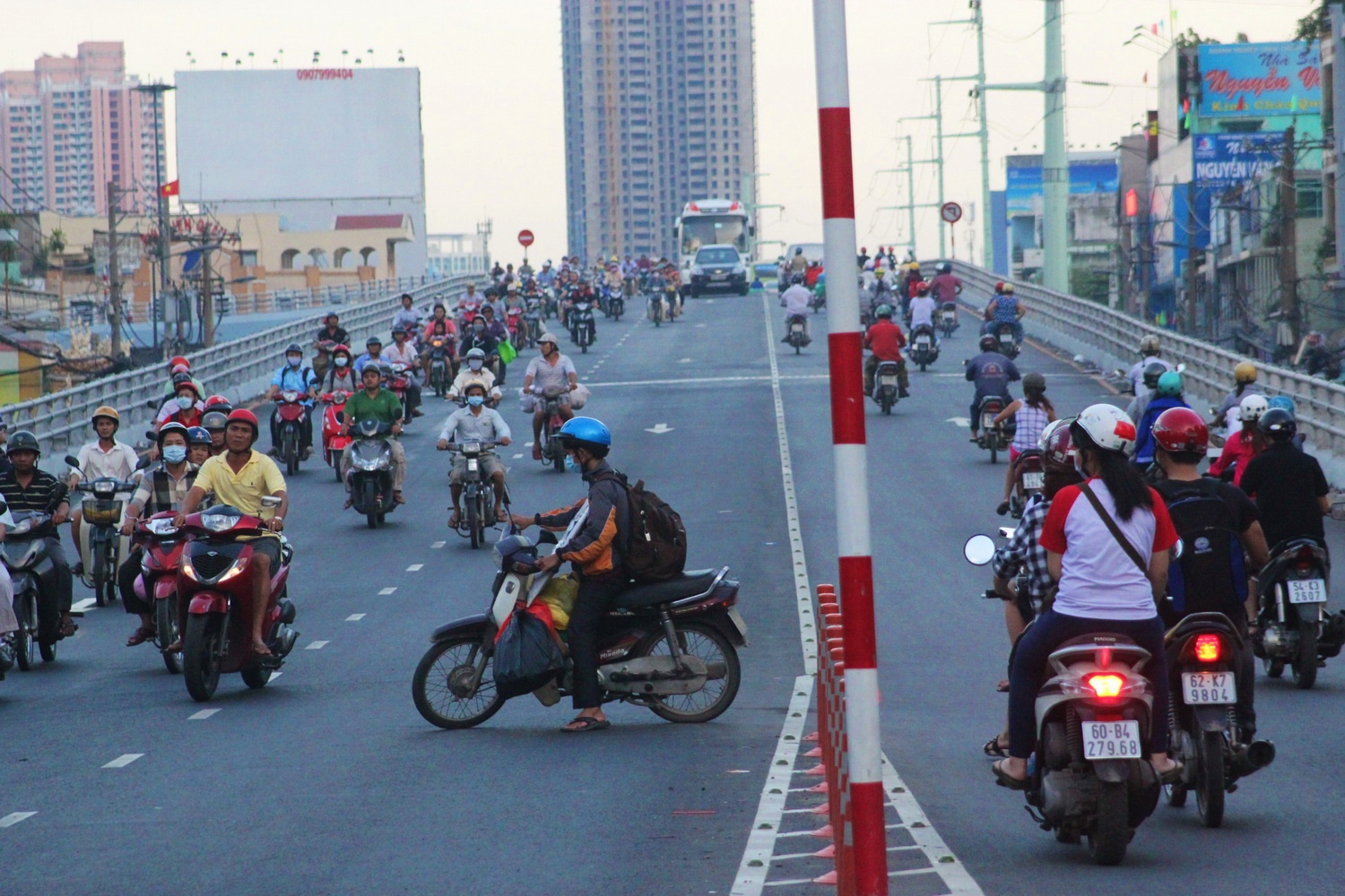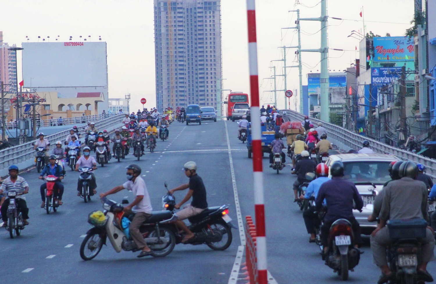 | Những người dân sinh sống gần chân cầu phía Q.6 cho biết tình trạng vi phạm này diễn ra từ khi cầu vượt được khánh thành. Nhiều lần họ chứng kiến các loại phương tiện đang lao dốc phải phanh đột xuất, bóp còi inh ỏi vì người điều khiển xe máy băng qua đột ngột như thế này. |