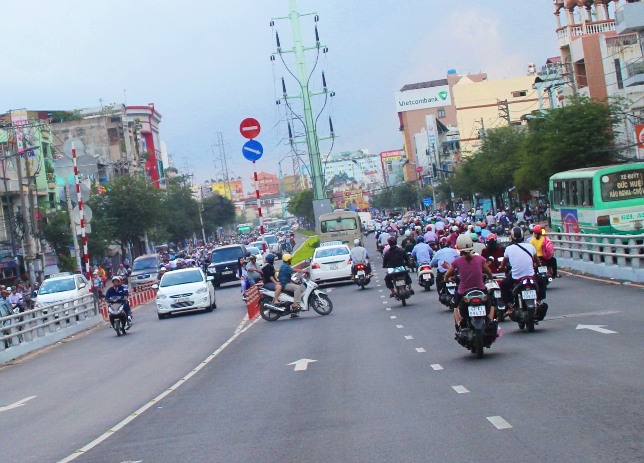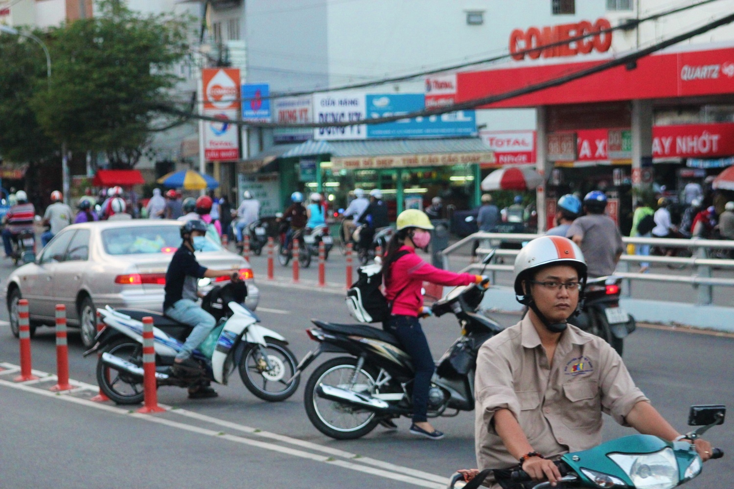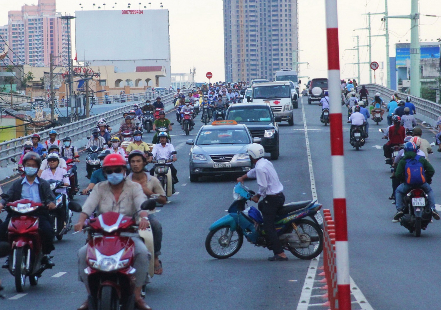 | Những người dân sinh sống gần chân cầu phía Q.6 cho biết tình trạng vi phạm này diễn ra từ khi cầu vượt được khánh thành. Nhiều lần họ chứng kiến các loại phương tiện đang lao dốc phải phanh đột xuất, bóp còi inh ỏi vì người điều khiển xe máy băng qua đột ngột như thế này. |