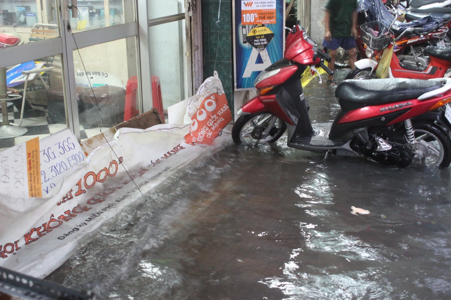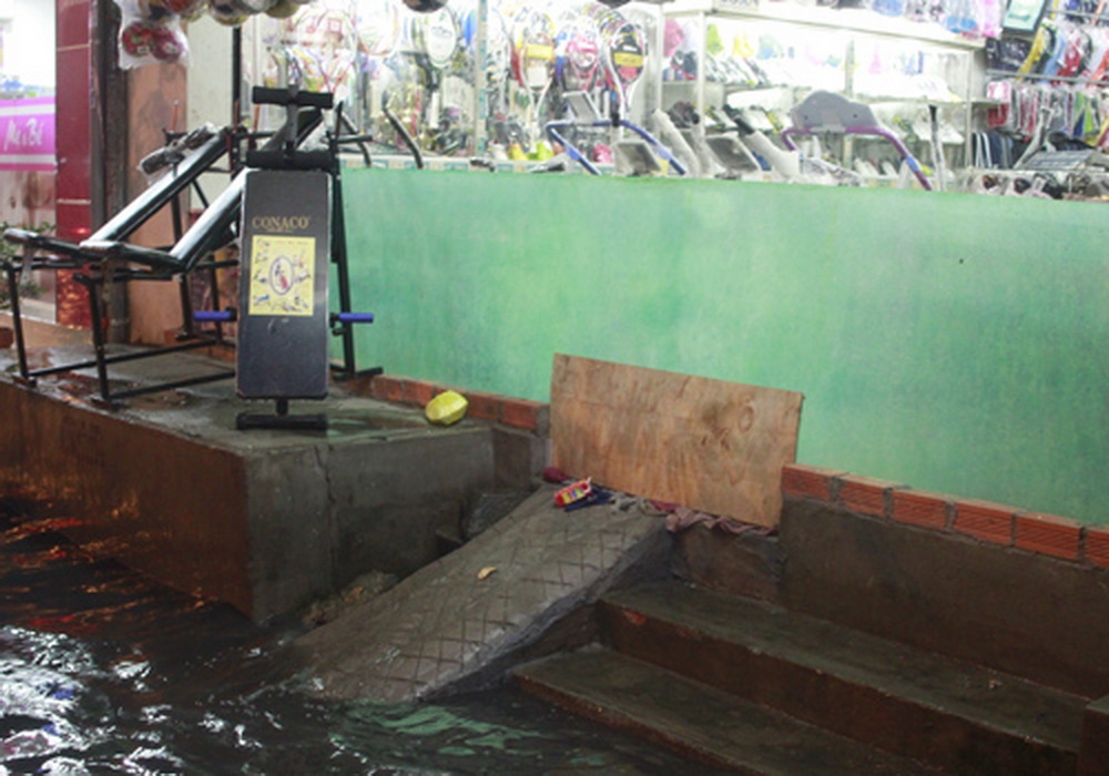 Cơn mưa lớn vào chiều qua (3/9) không chỉ làm nhiều con đường bị ngập cả mét, mà nước còn tràn vào nhà dân gây hư hỏng đồ đạc. Nhiều gia đình phải dùng ván, bao tải cát... để ngăn nước và rác vào nhà.