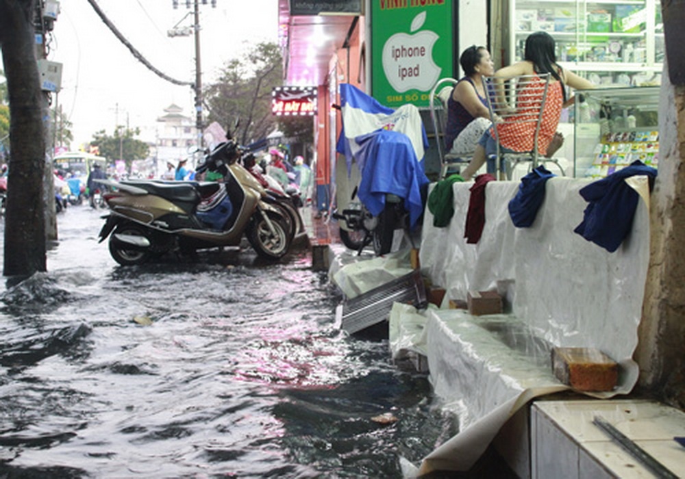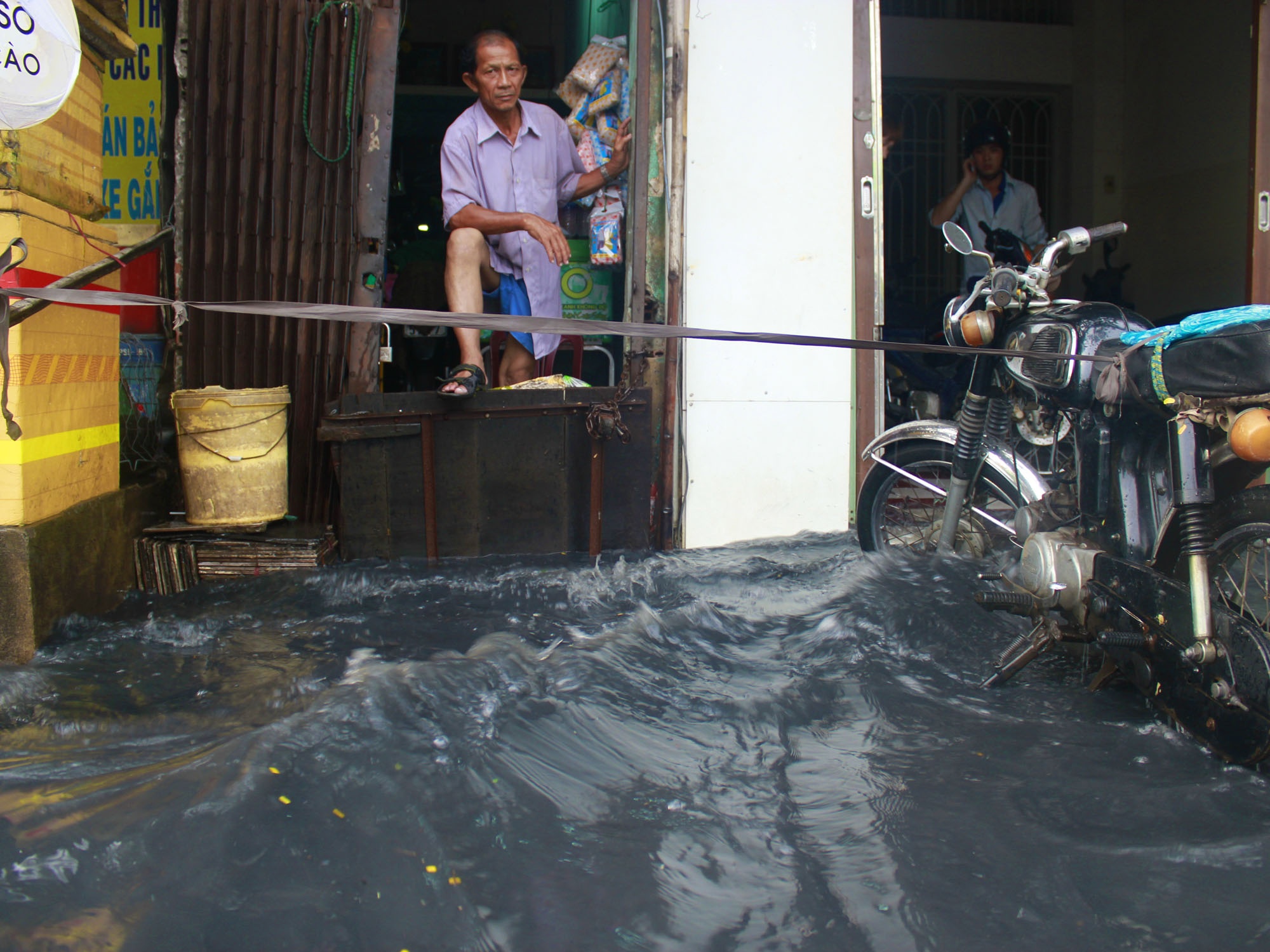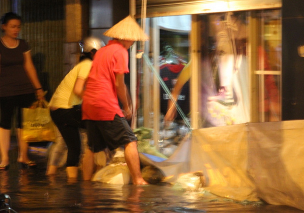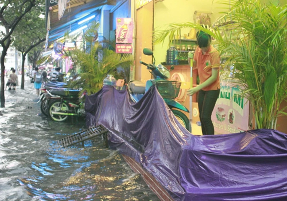 Người Sài Gòn dựng 'đê' chắn sóng tràn vào nhà