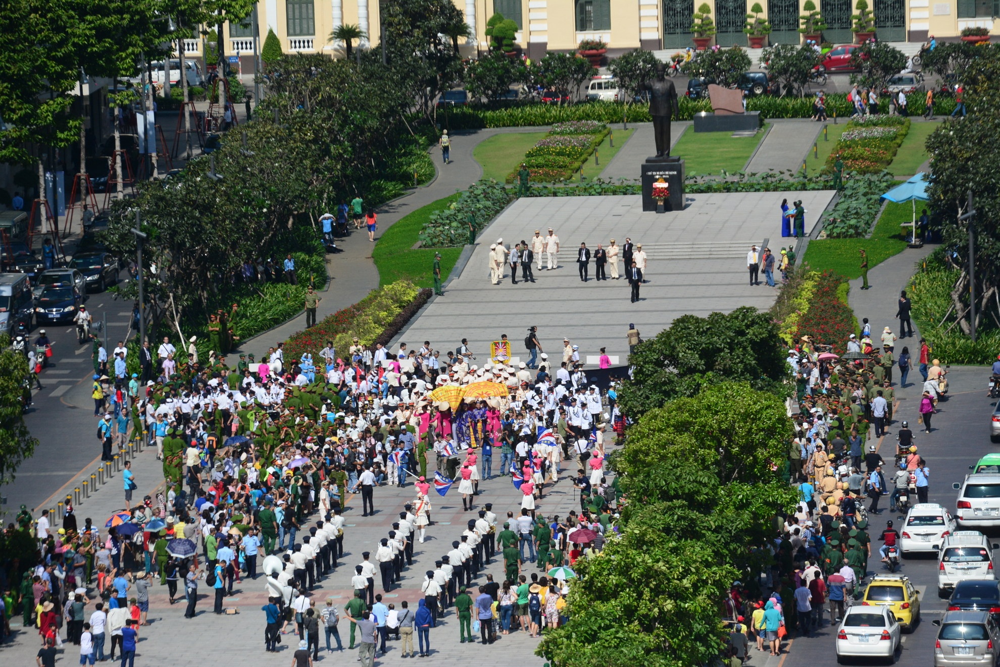 | Điểm cuối của cuộc trình diễn là tượng đài Bác Hồ trước UBND thành phố. Tối mai (15/11), 200 cảnh sát sẽ tham gia chương trình hòa nhạc tại nhà hát Hòa Bình (quận 10) |