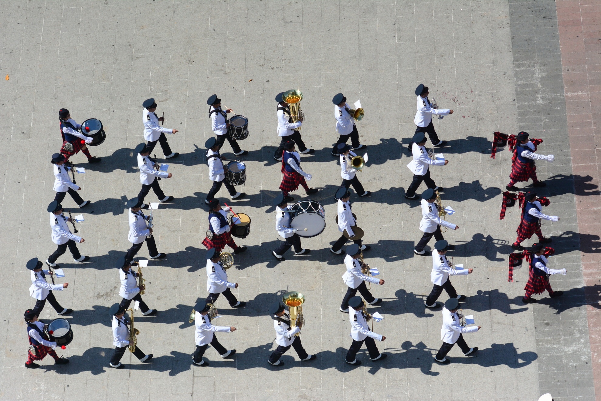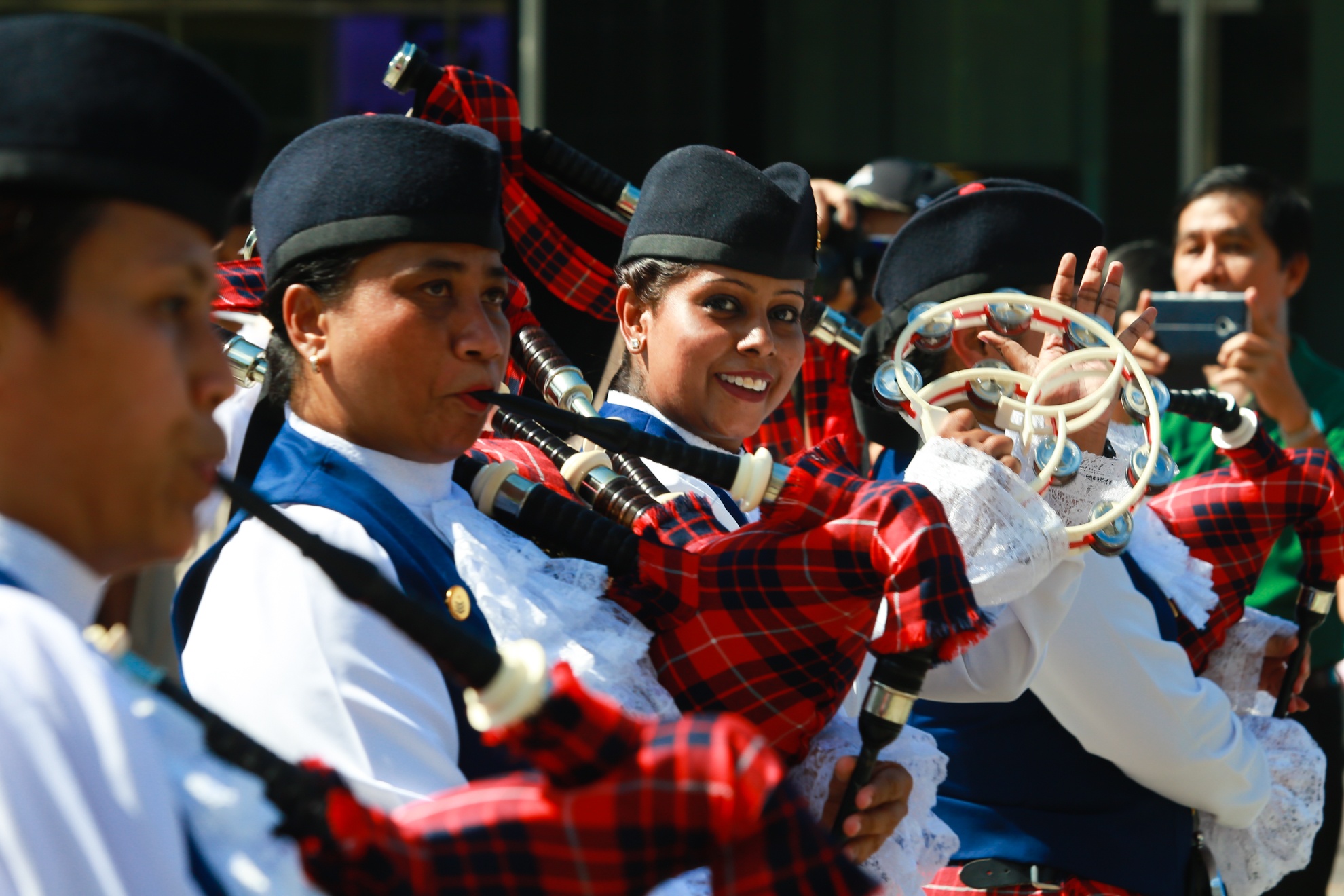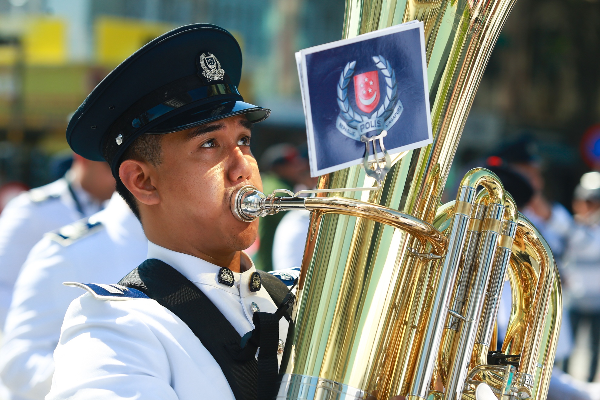 | Đoàn quân nhạc Singapore làm huyên náo cả một góc phố với sự phối hợp của trống, kèn... |