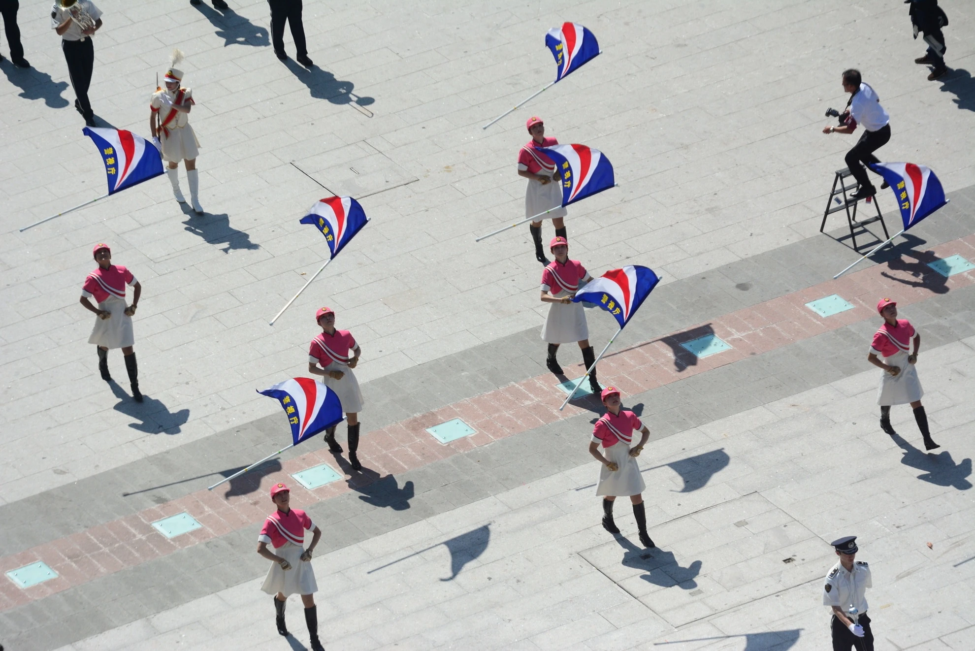 | Đoàn quân nhạc cảnh sát Tokyo (Nhật Bản) trình diễn màn tung cờ điệu nghệ. |