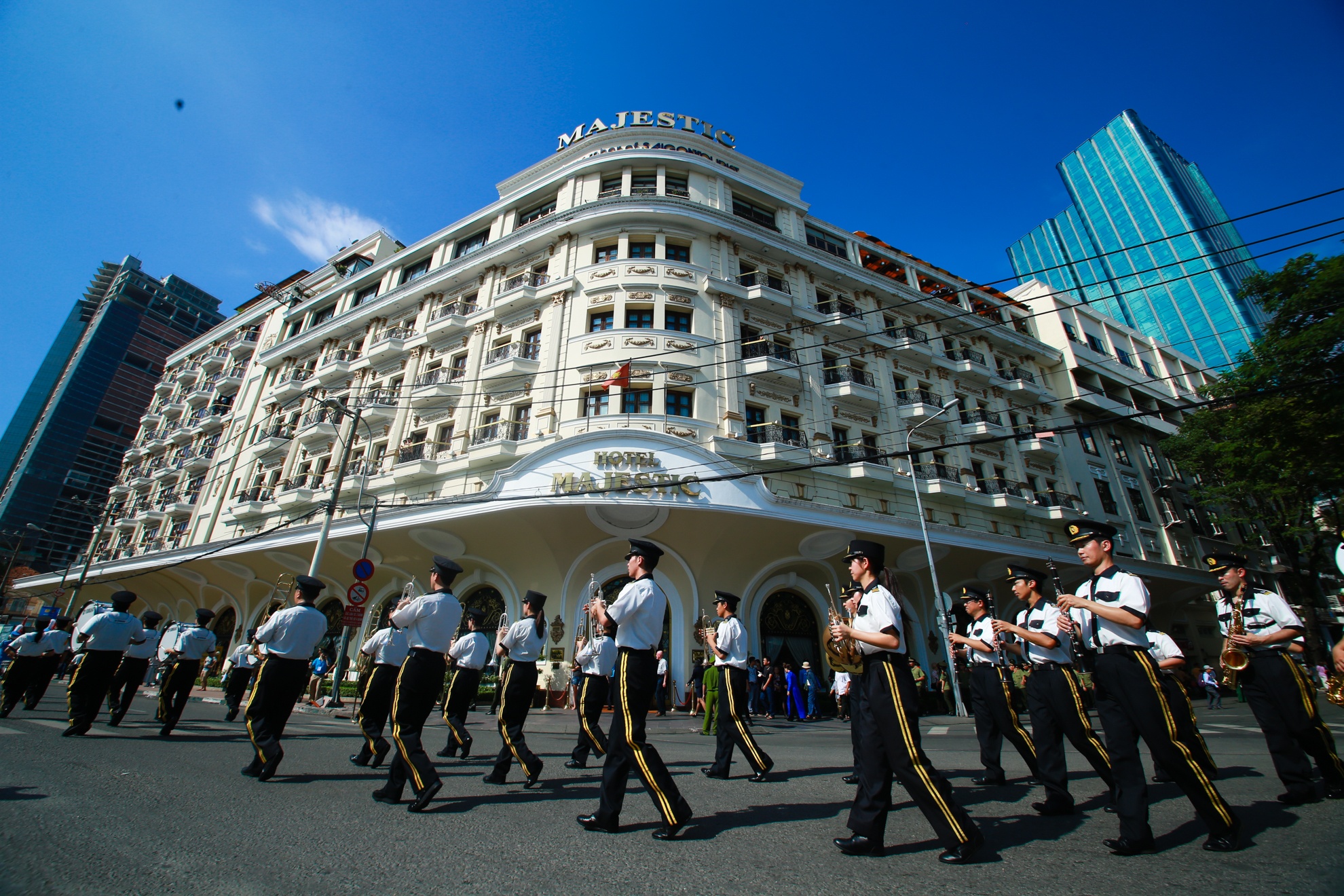 | Đoàn biểu diễn đi qua nhiều địa danh lịch sử nổi tiếng gắn liền với Sài Gòn như: Nhà hát thành phố, khách sạn Continental, Caravelle, Majestic, bến Bạch Đằng, UBND TP HCM... |