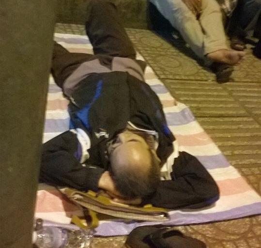 | Bệnh nhân ngủ trước cổng Việt Tim chờ lấy số thứ tự. |