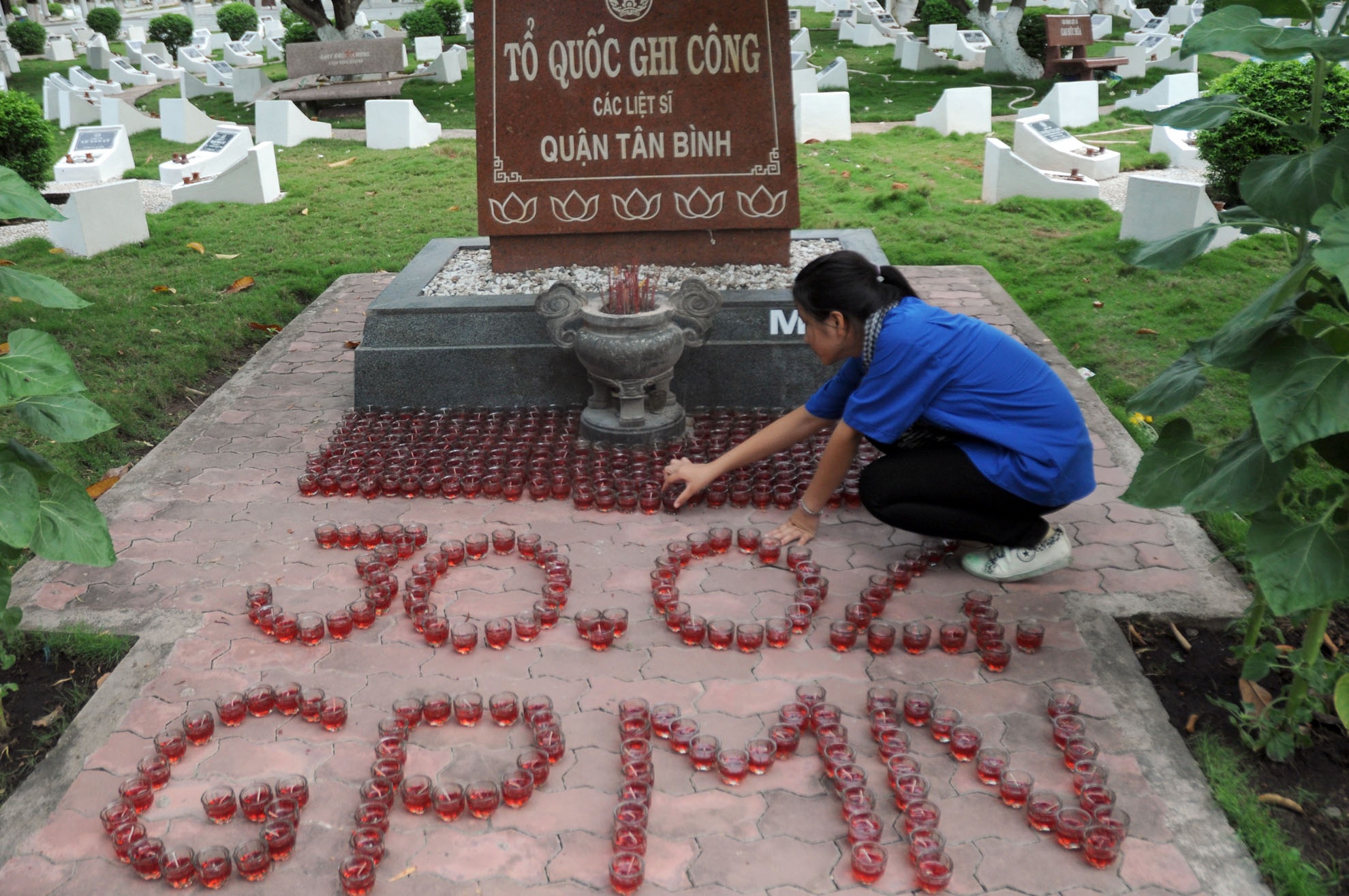 | Tại Nghĩa trang liệt sĩ thành phố (quận 9), đông đảo đoàn viên thanh niên và các đại biểu đã thắp hương, dâng hoa, tỏ lòng thành kính và biết ơn vô hạn đối với thế hệ cha anh đã hy sinh cho sự nghiệp đấu tranh giải phóng dân tộc, xây dựng và bảo vệ Tổ quốc |