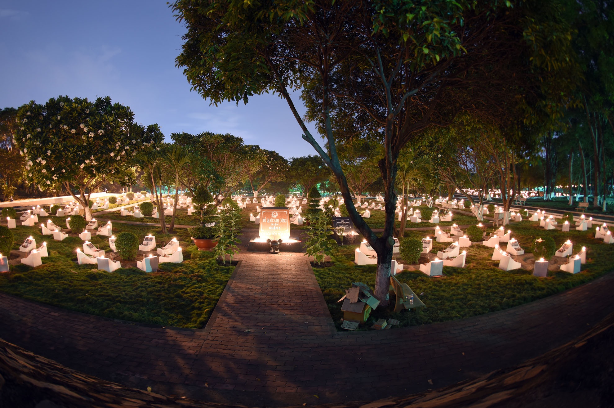 15.000 ngôi mộ tại nghĩa trang liệt sĩ TP HCM sáng lung linh trong lễ thắp nến tri ân nằm trong chuỗi các hoạt động đền ơn đáp nghĩa nhân kỷ niệm 40 năm thống nhất đất nước.