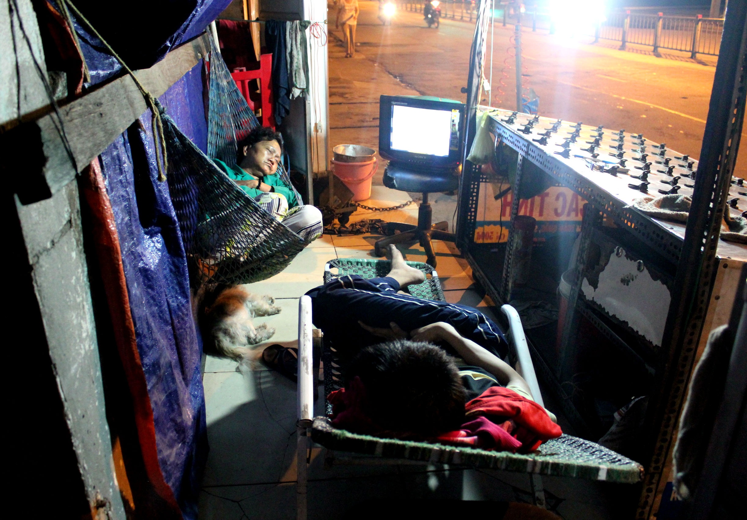 | Trong khi chiếc tivi đang chiếu hình ảnh cầu thủ Brazil ghi bàn thắng nâng tỷ số lên 3-1 thì cậu bé và người phụ nữ bán vé số đêm đang có môt giấc ngon lành bên đường Trường Chinh, quận Tân Phú. |
