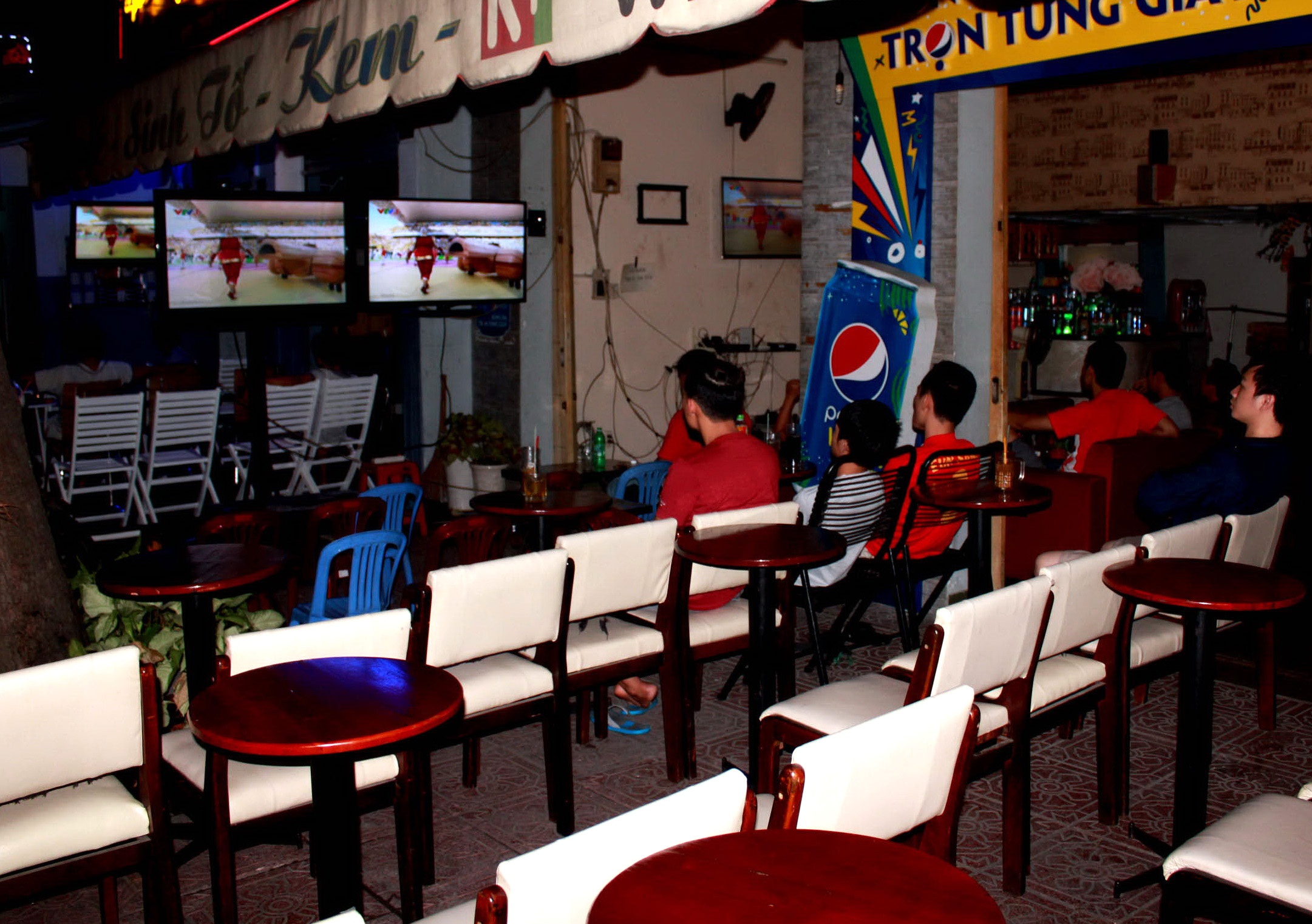 | Trước giờ khai mạc giải bóng đá lớn nhất hành tinh, một số người đã có mặt tại các quán cà phê, quán nhậu suốt dọc bờ kênh Nhiêu Lộc - Thị Nghè để thưởng thức những màn trình diễn đặc sắc của lễ khai mạc World Cup 2014. |