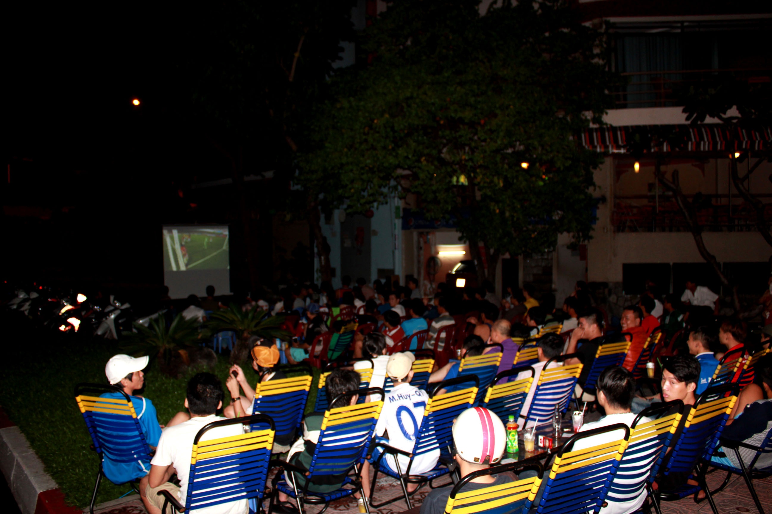 | Một sân khấu xem bóng đá lớn với màn hình 1000 inch tại công viên Lê Thị Riêng rất hấp dẫn nhưng chưa thu hút được nhiều người hâm mộ tới trong ngày khai mạc. Người quản lý cho biết, do mới thực hiện, chưa quảng bá được nhiều nên ít khách, nhưng hy vọng những ngày tới khách sẽ càng đông hơn. |