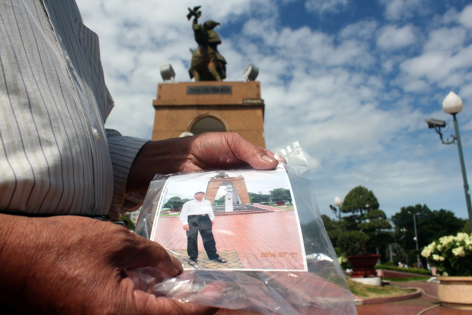 | Ông Nguyễn Văn Cách (57 tuổi, Hà Đông, Hà Nội), nhận bức ảnh ông chụp trước tượng đài do thợ chụp ảnh gửi vào sáng 23/7. Ông Cách cho biết, ở ngoài Hà Nội nhưng thỉnh thoảng ông vào TP.HCM để thăm con cháu và thành phố. Biết được thông tin tượng Trần Nguyên Hãn sắp được di dời tới nơi khác nên ông tranh thủ tới chụp tấm ảnh làm kỷ niệm, chứ lần sau vào sợ tượng không còn nằm đây.