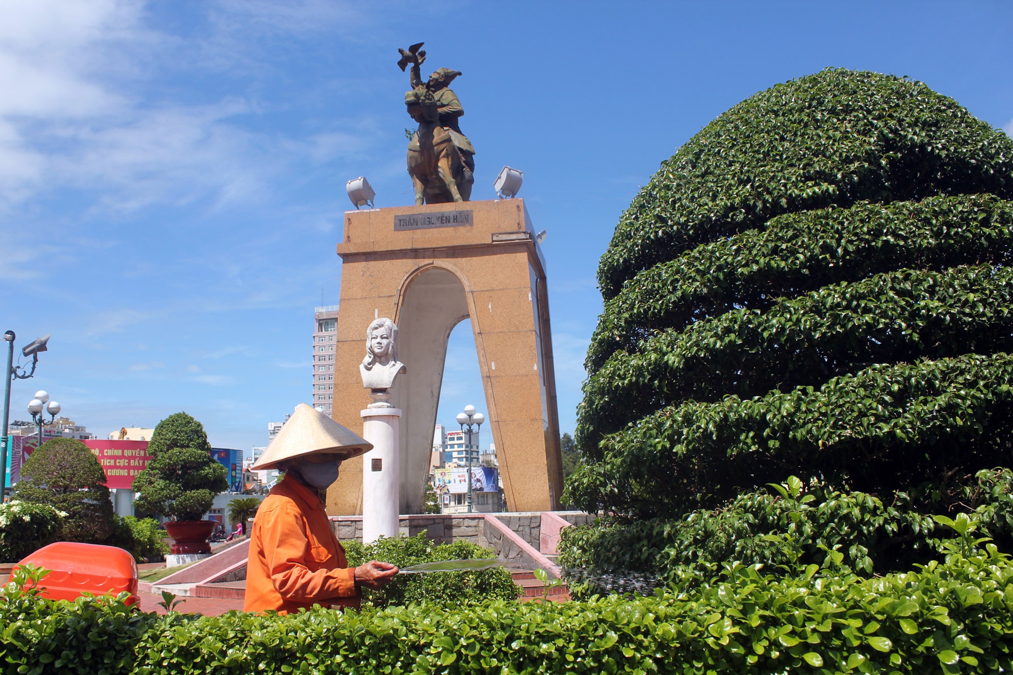 | Bà Năm, một công nhân hơn 30 năm chăm sóc cây cảnh dưới tượng đài ngậm ngùi chia sẻ: "Bức tượng đã quá quen thuộc với tôi mấy chục năm nay, công việc của tôi và đồng nghiệp luôn gắn bó với bức tượng. Khi biết tượng sẽ được di dời sang nơi khác tôi thấy hơi tiếc vì thấy nó cũng quen thuộc đối với nhiều người dân thành phố này". |